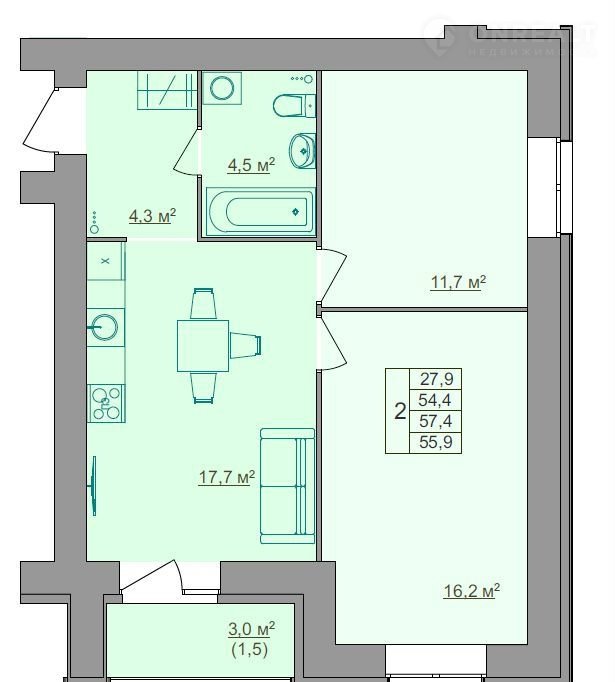 В продаже: студии, 1-, 2-, 3-, 4-комнатные квартиры
