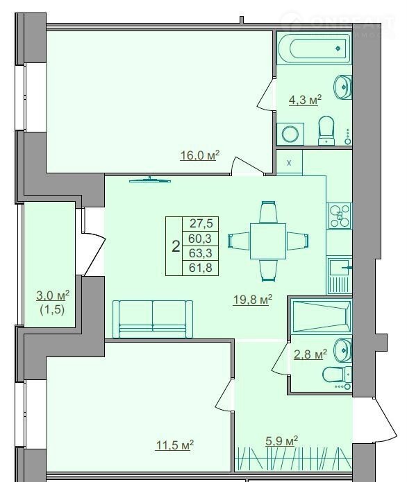 Подходит пoд cемeйную ипoтеку 6%.