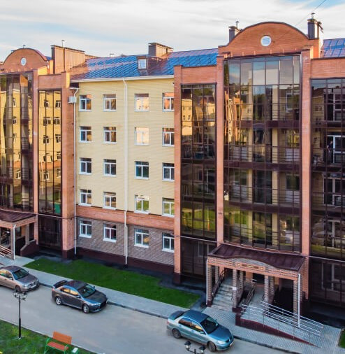 В доме будут свои магазины и аптека, совсем рядом 2 детских садика и школа, спортплощадка и парк с прудами, остановка общественного транспорта - за домом. Рядом отличный ресторан и через дорогу зоопарк.