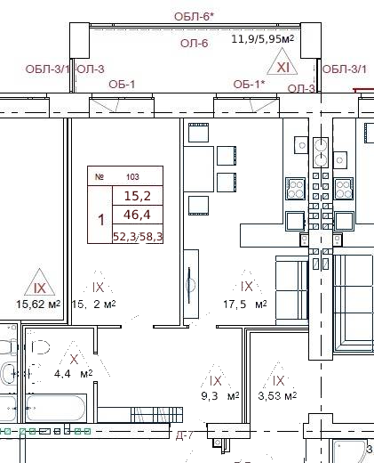Общая площадь 58.3 м2