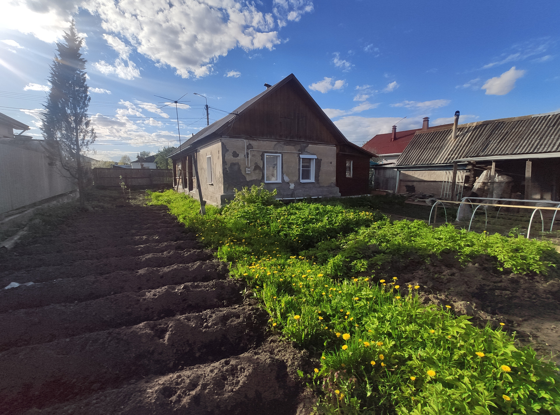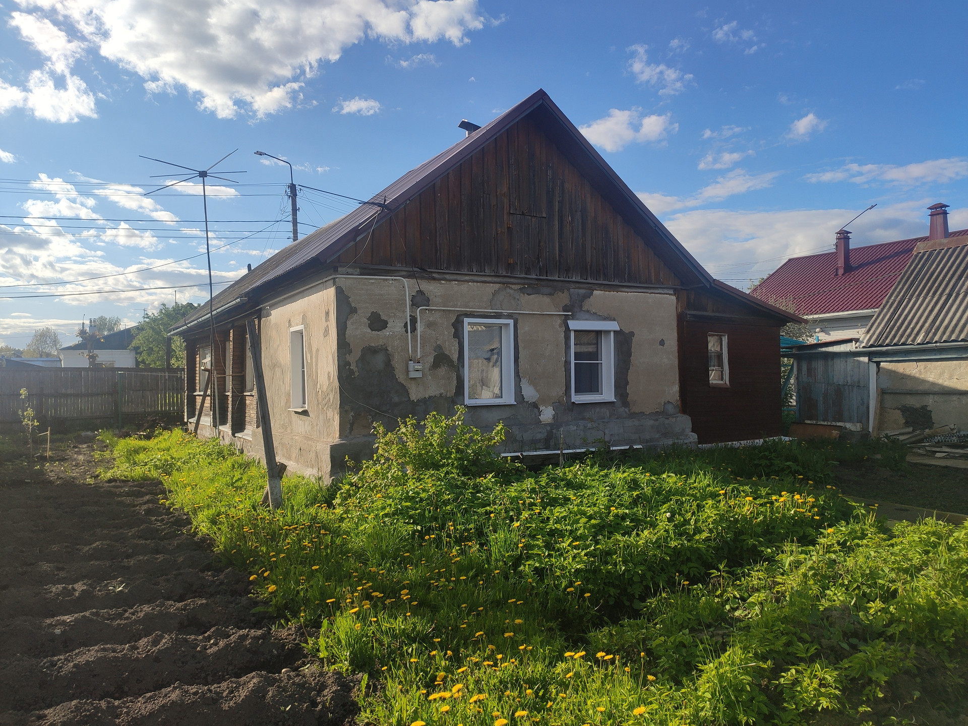 Информация о доме - Материал дома - шлакобетон. Фундамент - кирпич. Крыша - скатная, проф. настил. Огороженная территория. Хорошие соседи. Земельный участок в 6 соток на 2 семьи. Есть небольшая деревянная сарайка для хранения хоз. инвентаря.