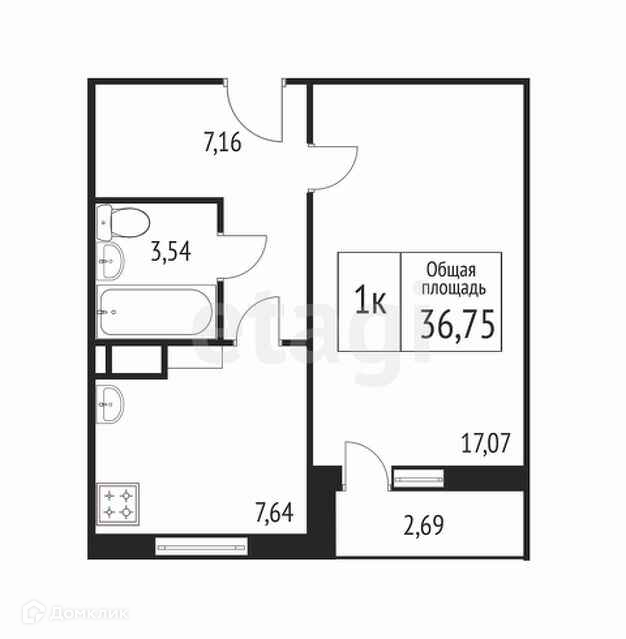 Общая площадь 36.8 м2