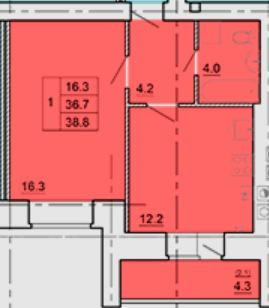 Общая площадь 36.7 м2