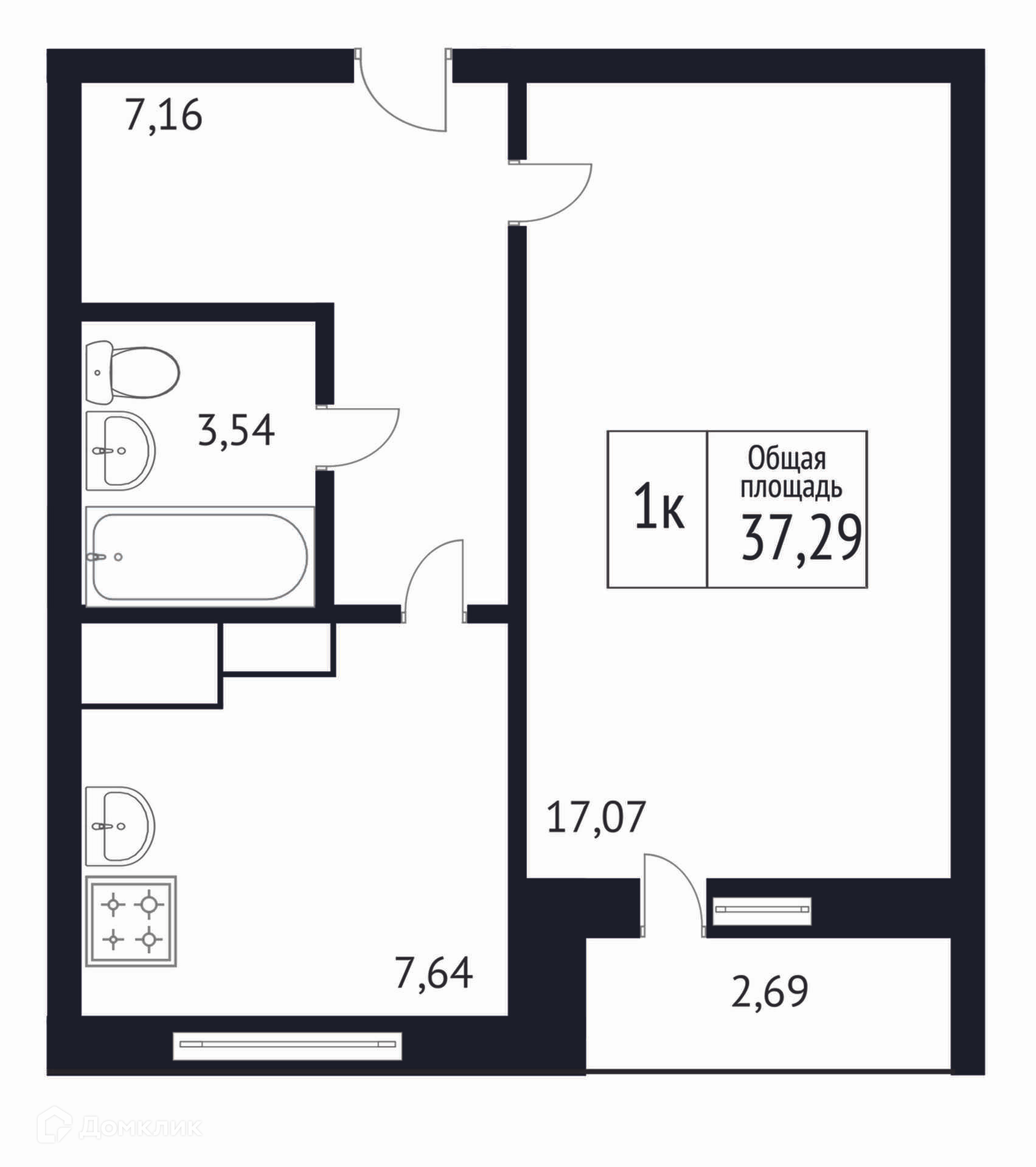 Общая площадь 37.29 м2