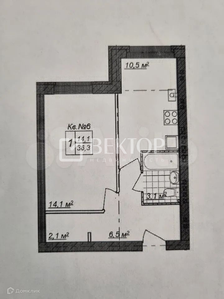 Общая площадь 36.3 м2