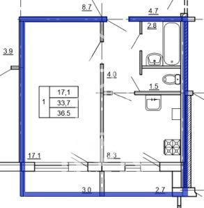 Общая площадь 39.4 м2