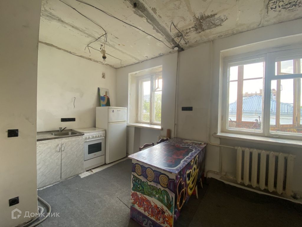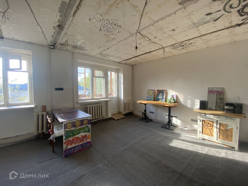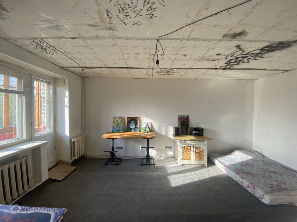 Перепланирована в студию, при необходимости можно вернуть стену (была из гипсокортона). Отделка white box (белая коробка). Стены выровнены и подготовлены под покраску или поклейку обоев. Сняты пол и потолок. Новая проводка, выключатели и розетки. Квартира готова к косметическому ремонту (кроме санузла). Балкон застеклён. Есть готовый дизайн-проект, созданный именно для этой квартиры. Окна квартиры не выходят в окна другого дома. Дом не газифицирован, поэтому проживание в нём безопаснее, а коэффициент на электроэнергию снижен.
