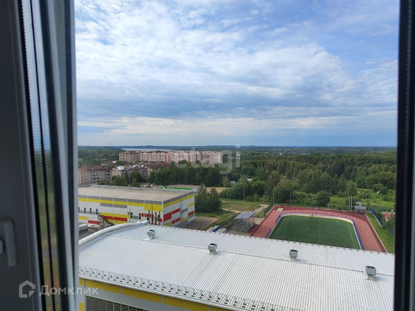 Из окна открывается прекрасный вид на реку Волгу и зеленую зону.