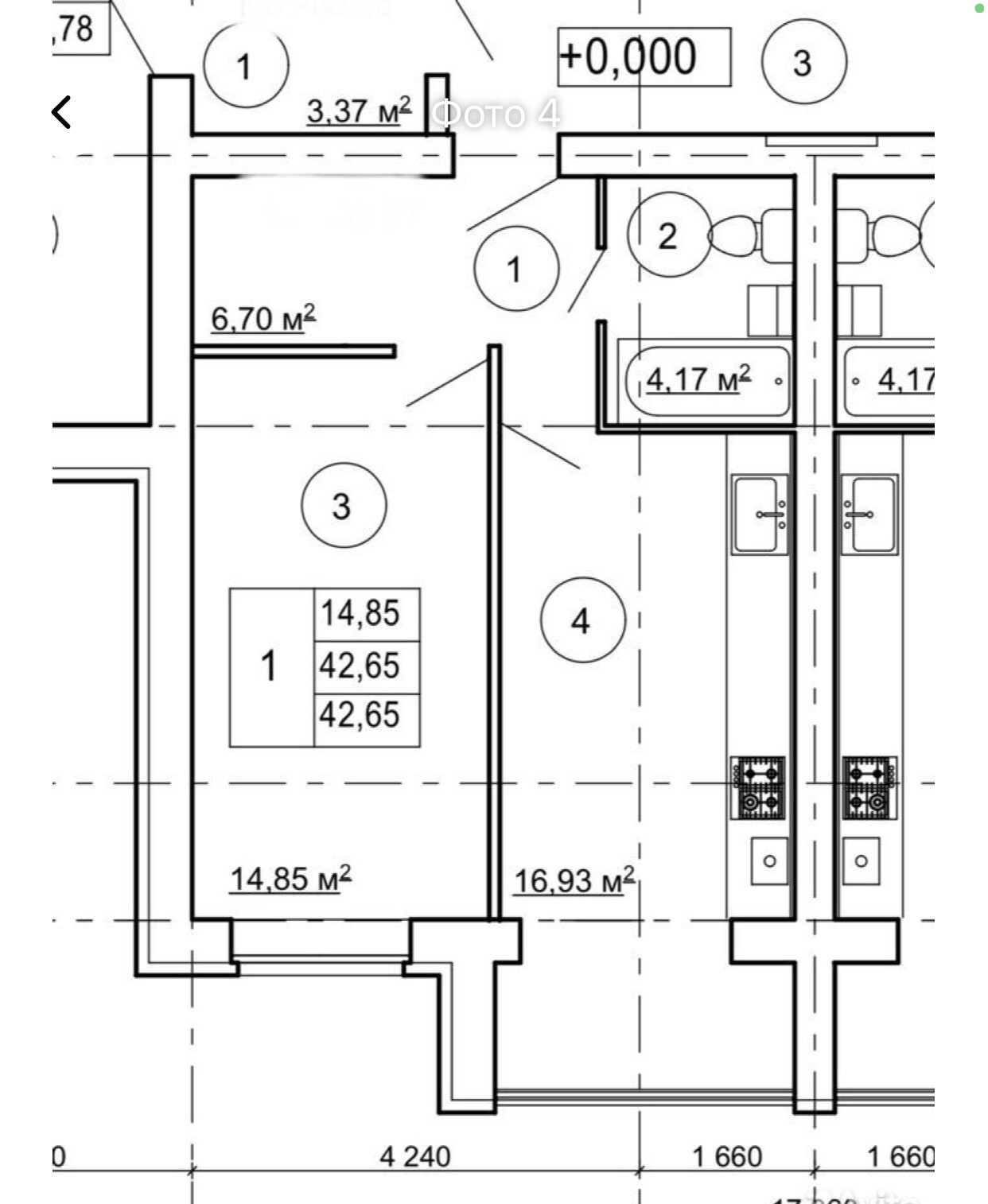 Общая площадь 42.3 м2, кухня 17м2,комната 15м2, санузел совмещённый , в прихожей место под вместительную гардеробную. Панорамное остекление. На территории дома видеонаблюдение.