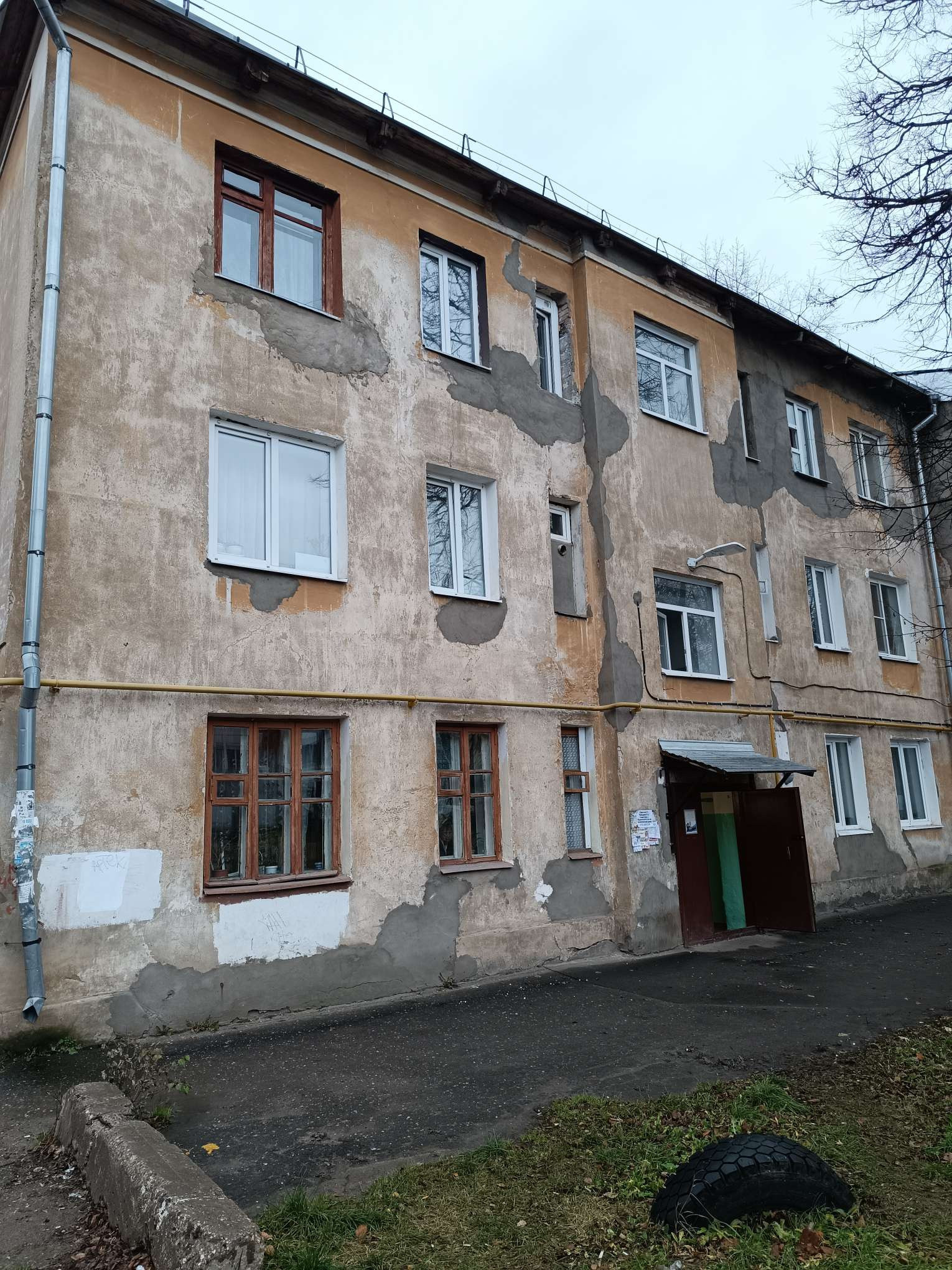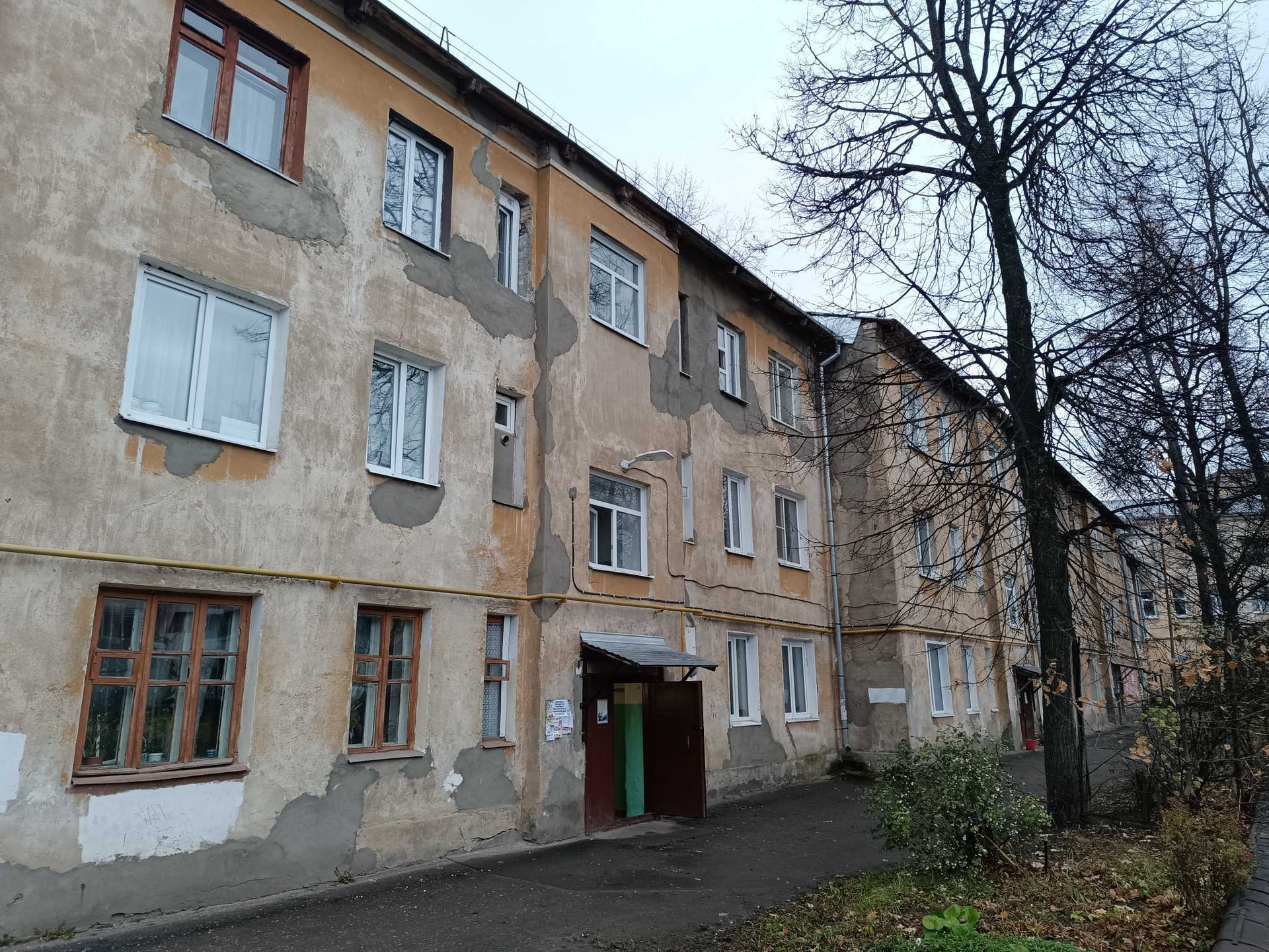 Дом кирпичный, Сталинка, перекрытия железобетонные. Окна выходят на эркер, вид на центральную улицу.