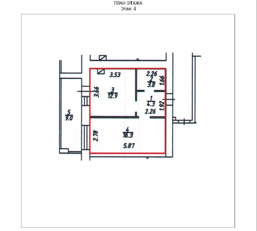 Жилая площадь 16.3 м2