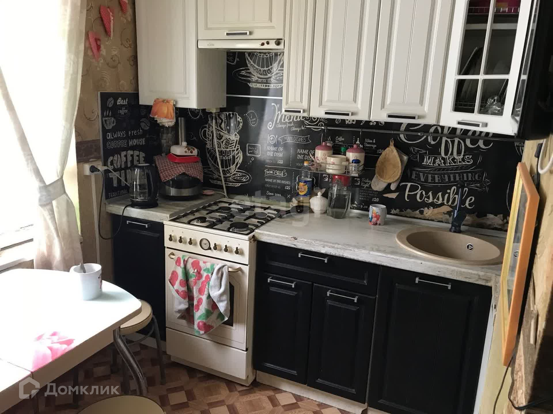 На кухне при продаже остается кухонный гарнитур.