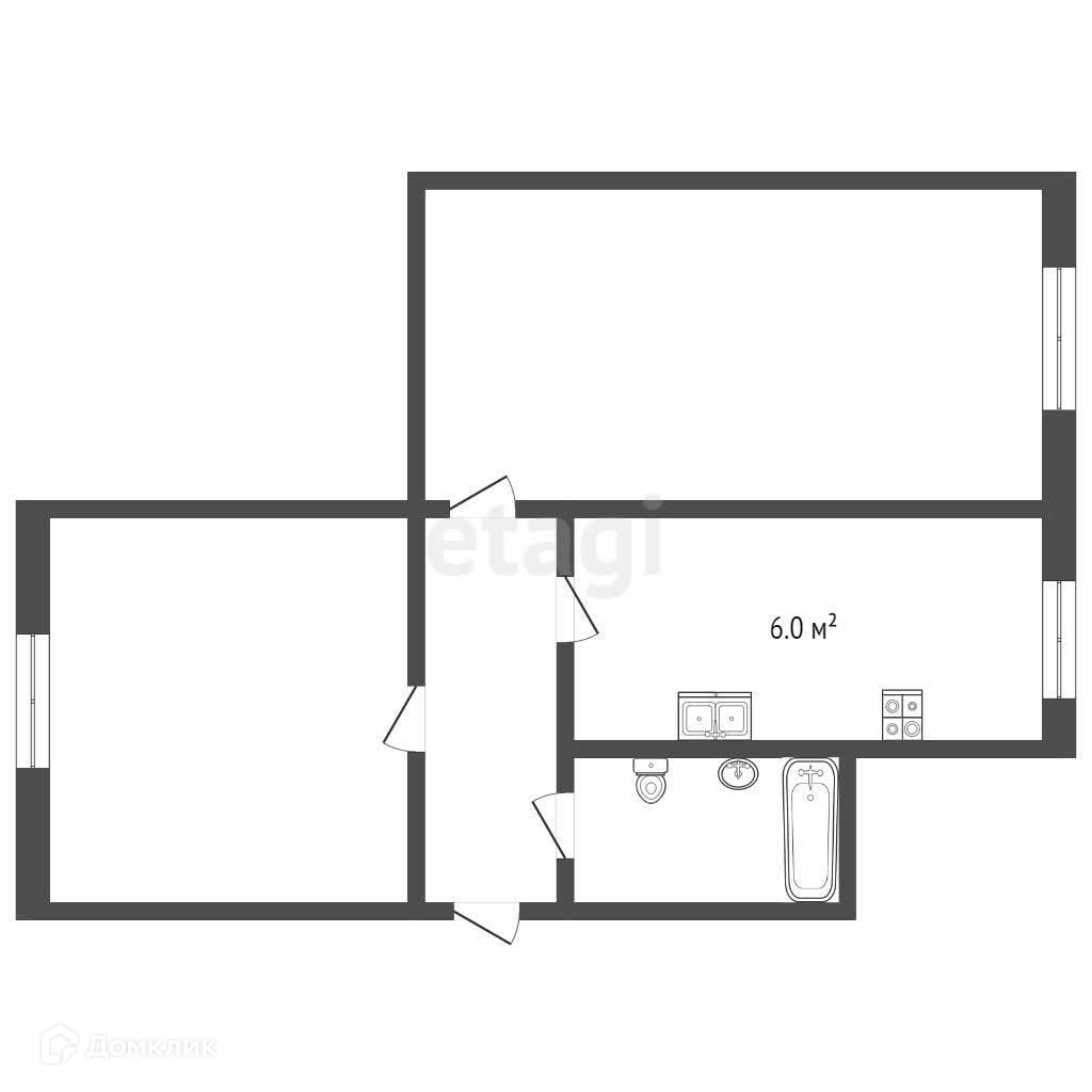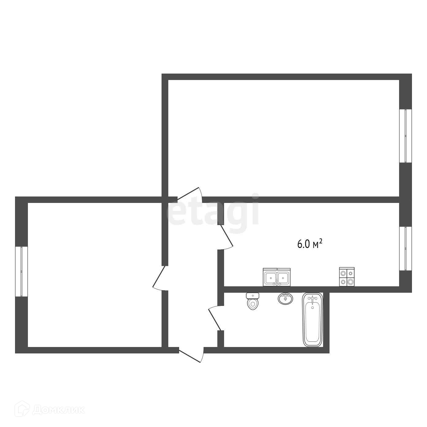 2-комнатная квартира, 43.8 м2, этаж 2 / 2, на продажу в Костроме, улица Чайковского, 11Б
