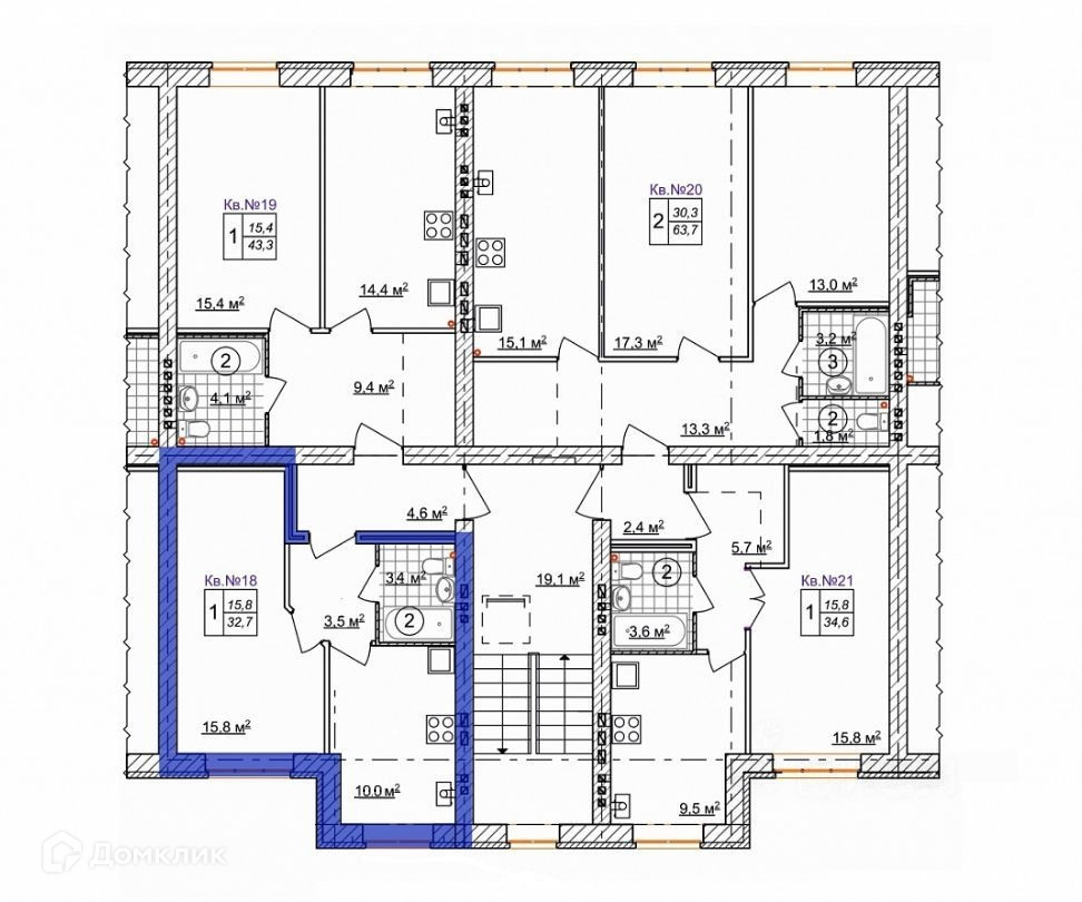 Общая площадь 32.7 м2