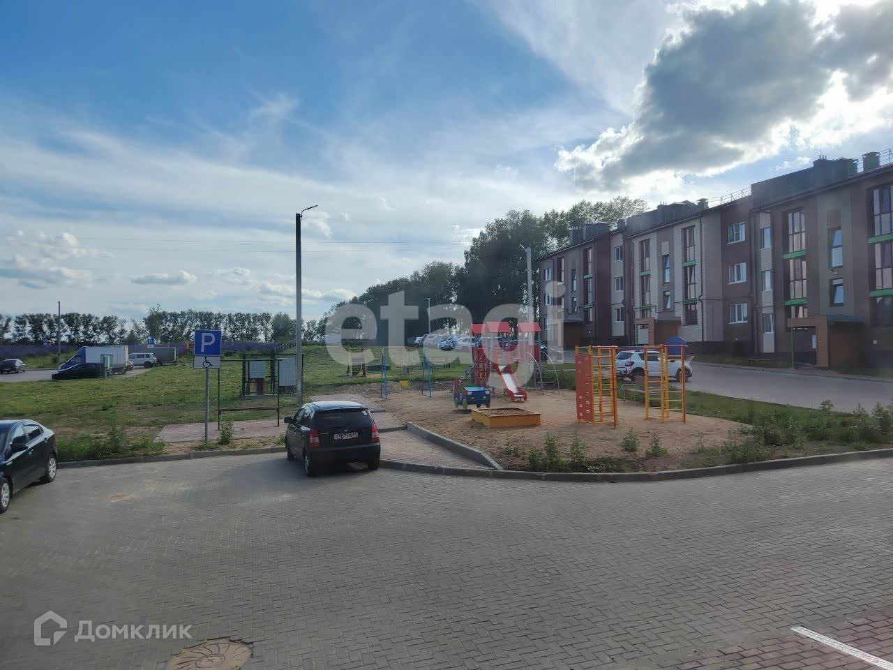 Во дворе достаточное количество парковочных мест. Современная детская площадка.