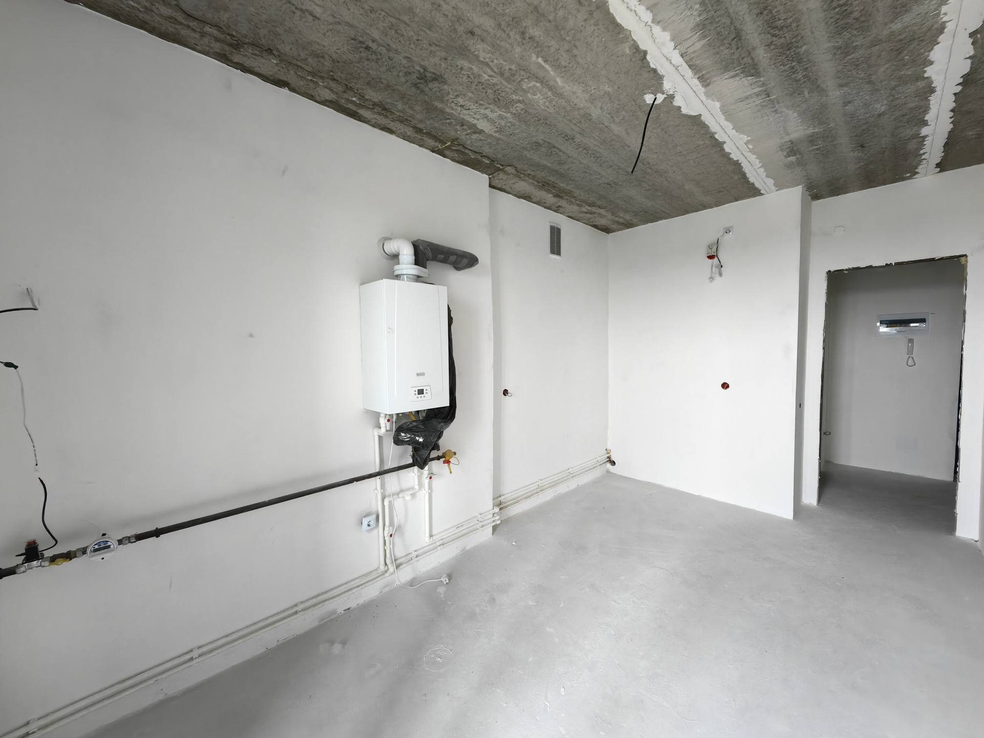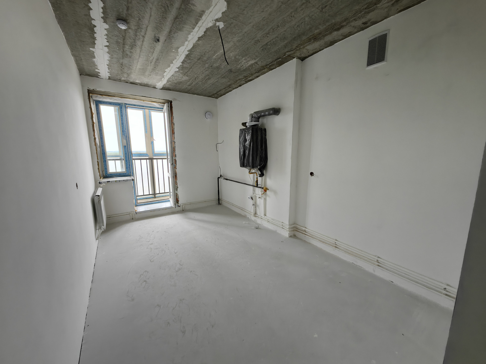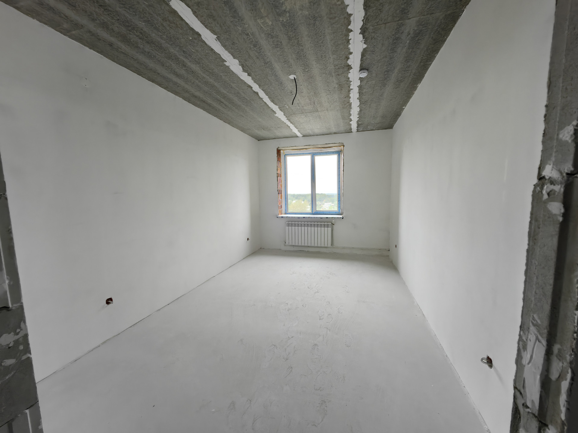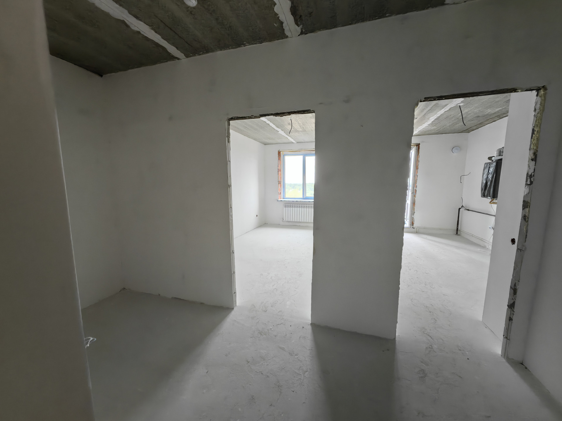 В квартире выполнена предчистовая отделка (шпатлевка стен), а так же разводка по электрике.