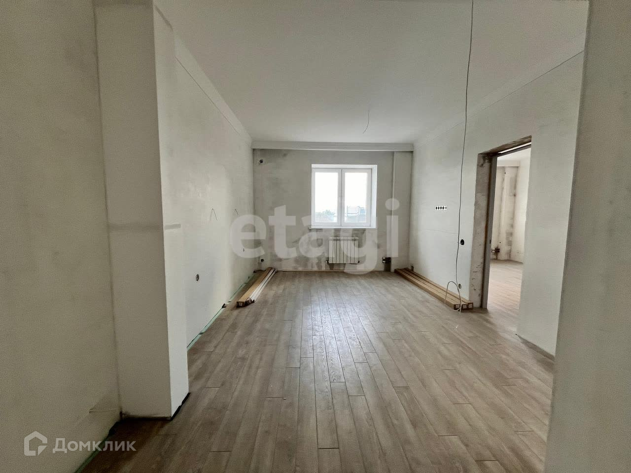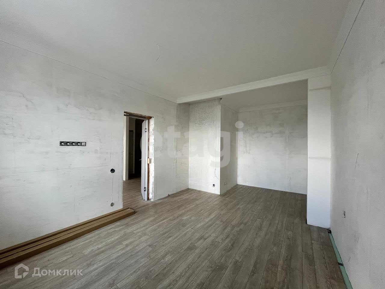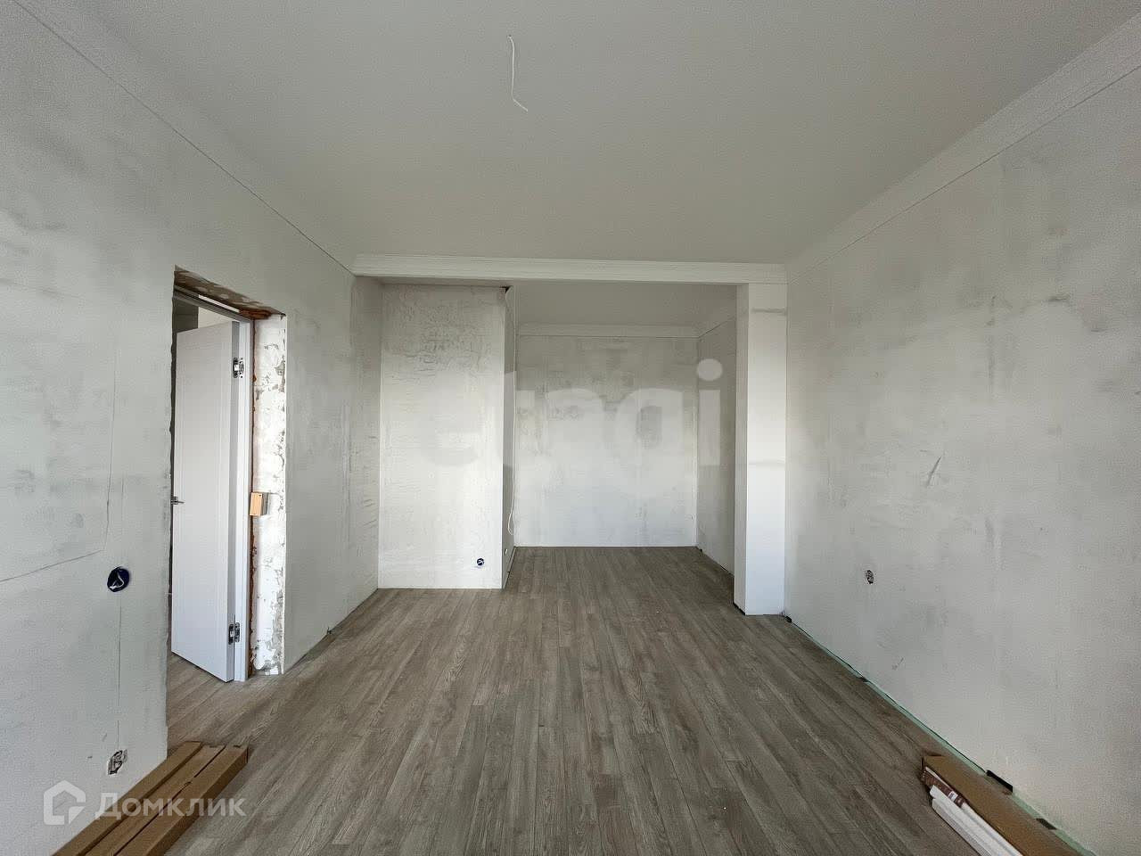 Установлены межкомнатные двери, уложен ламинат и все стены полностью готовы к поклейке обоев по вашему вкусу.