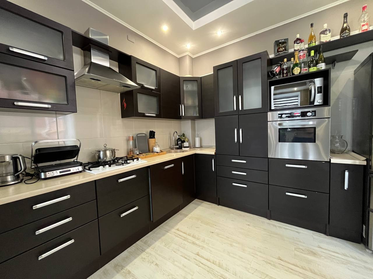 Внутри квартиры вас ждёт уютная жилая площадь 55 квадратных метров и просторная кухня площадью 25 квадратных метров, где можно с комфортом готовить и проводить время с семьёй. В квартире выполнен дизайнерский ремонт, что придаёт ей особый шарм и индивидуальность. Также стоит отметить наличие более одного санузла, что является большим плюсом для большой семьи или при приёме гостей.