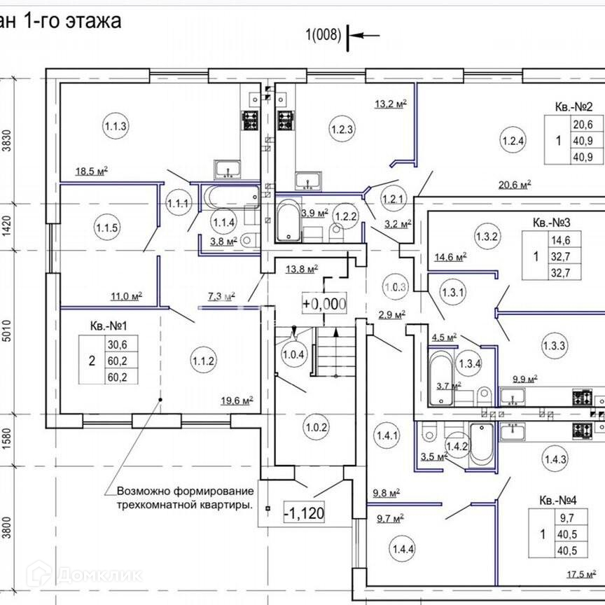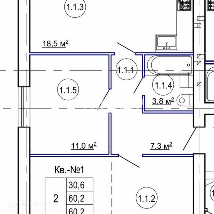 Общая площадь 60.2 м2
