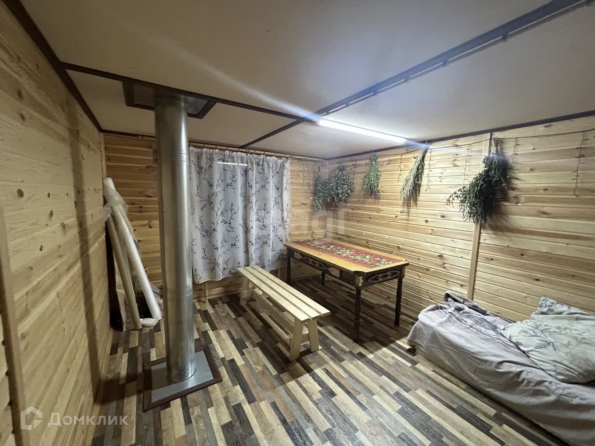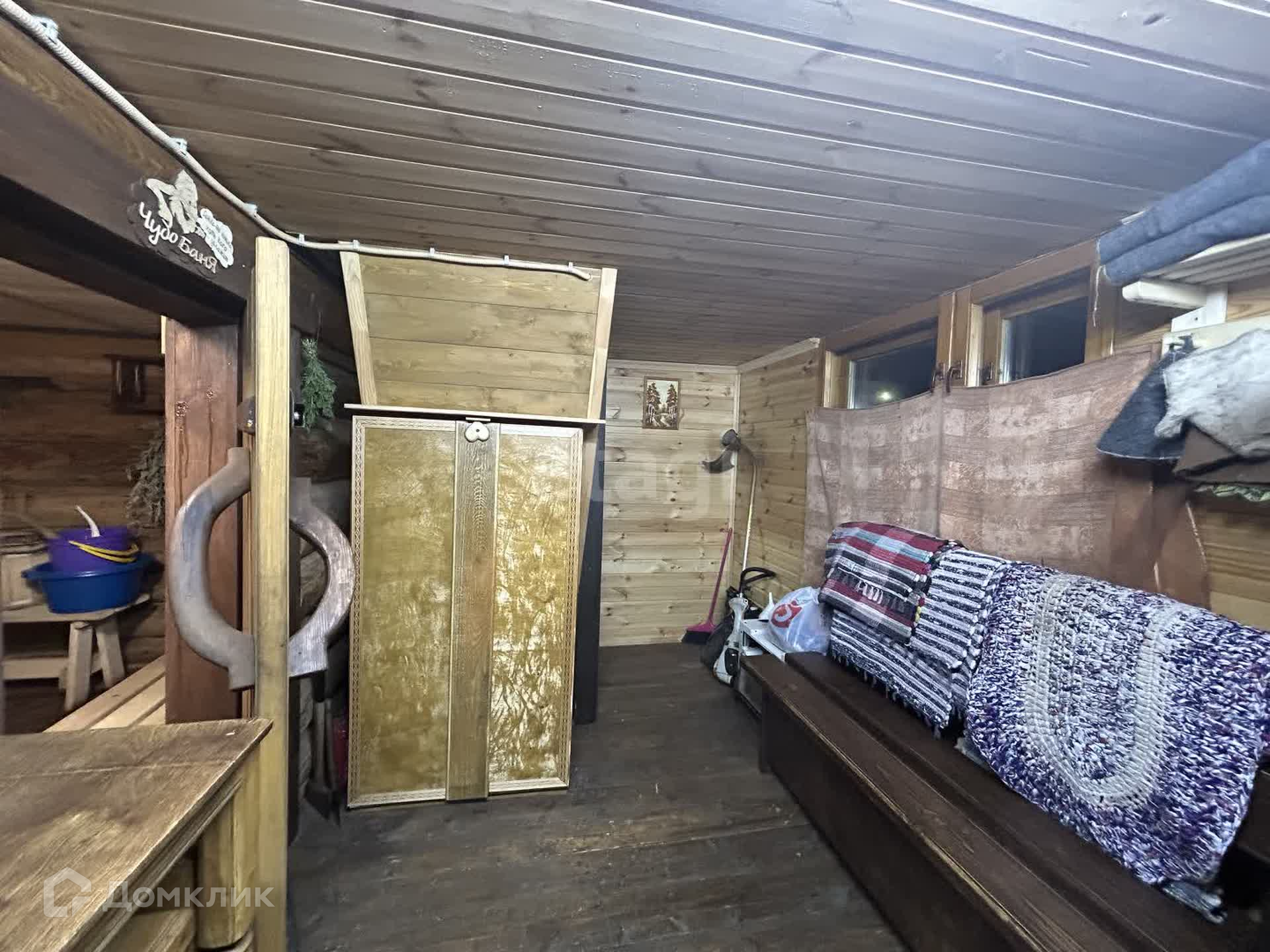 К квартире прилагается небольшой, ухоженный участок земли 1.5 сотки, на котором стоит русская баня. Баня срублена из бревна, двухэтажная. На первом этаже баня и предбанник, на втором- комната отдыха и балкон.