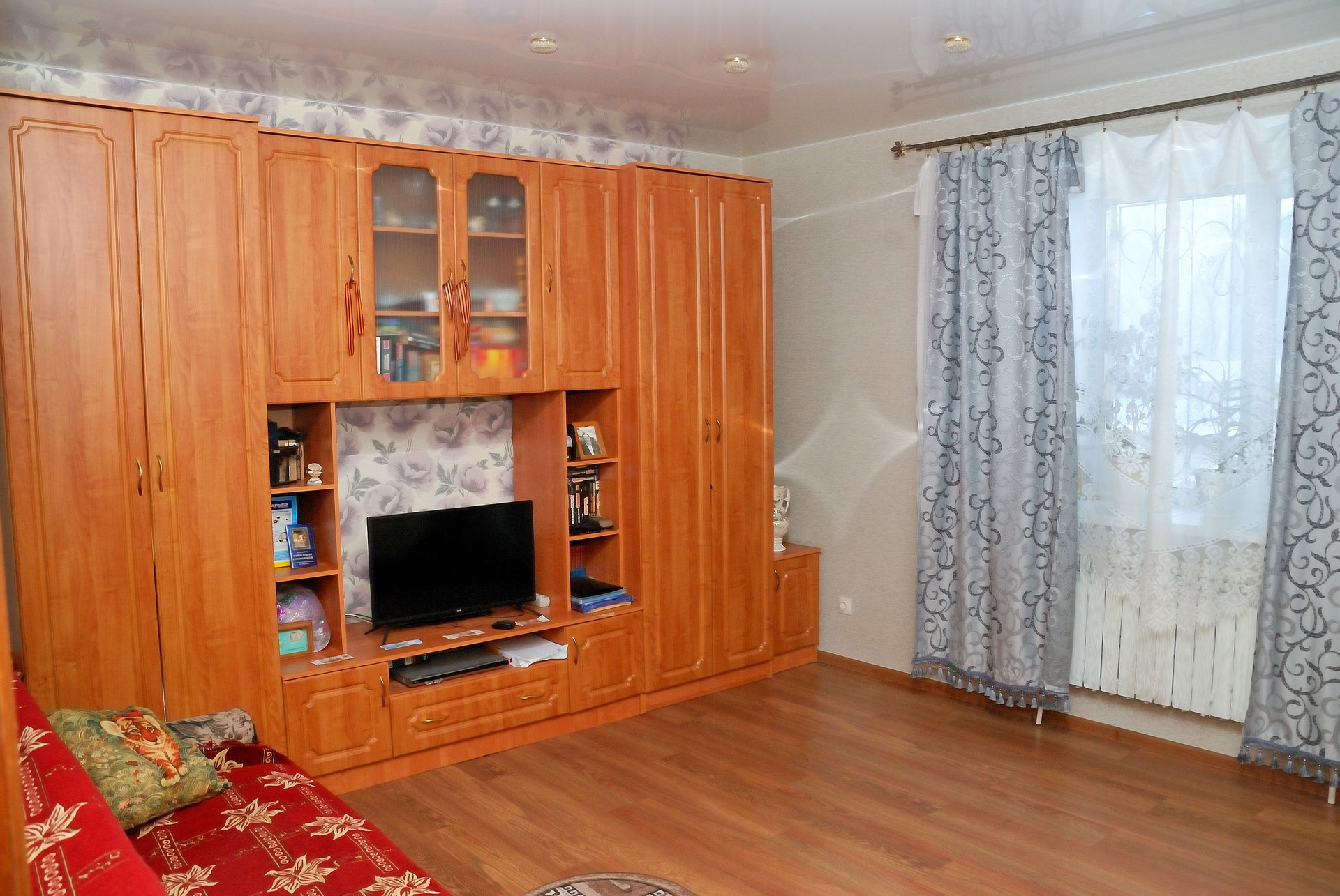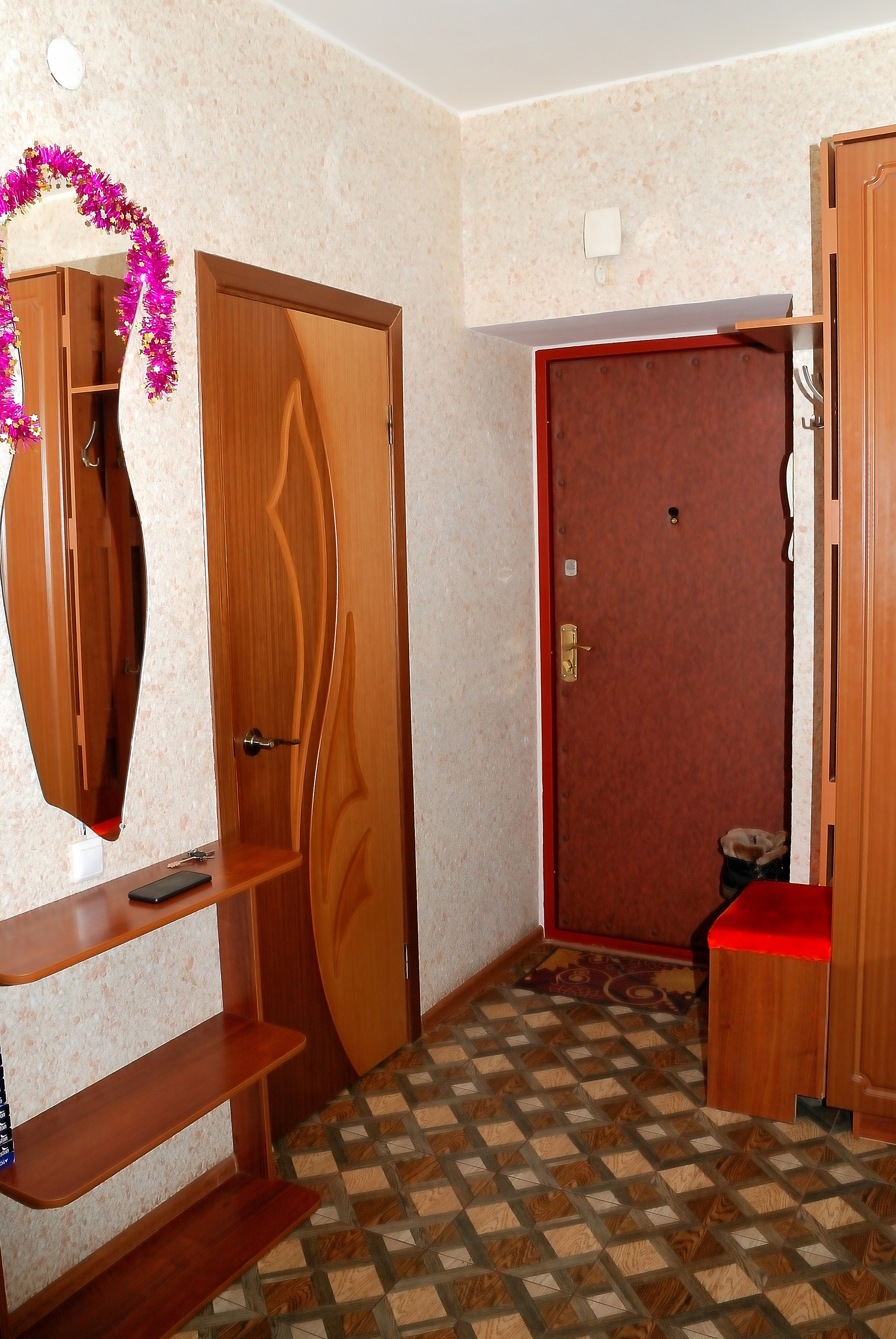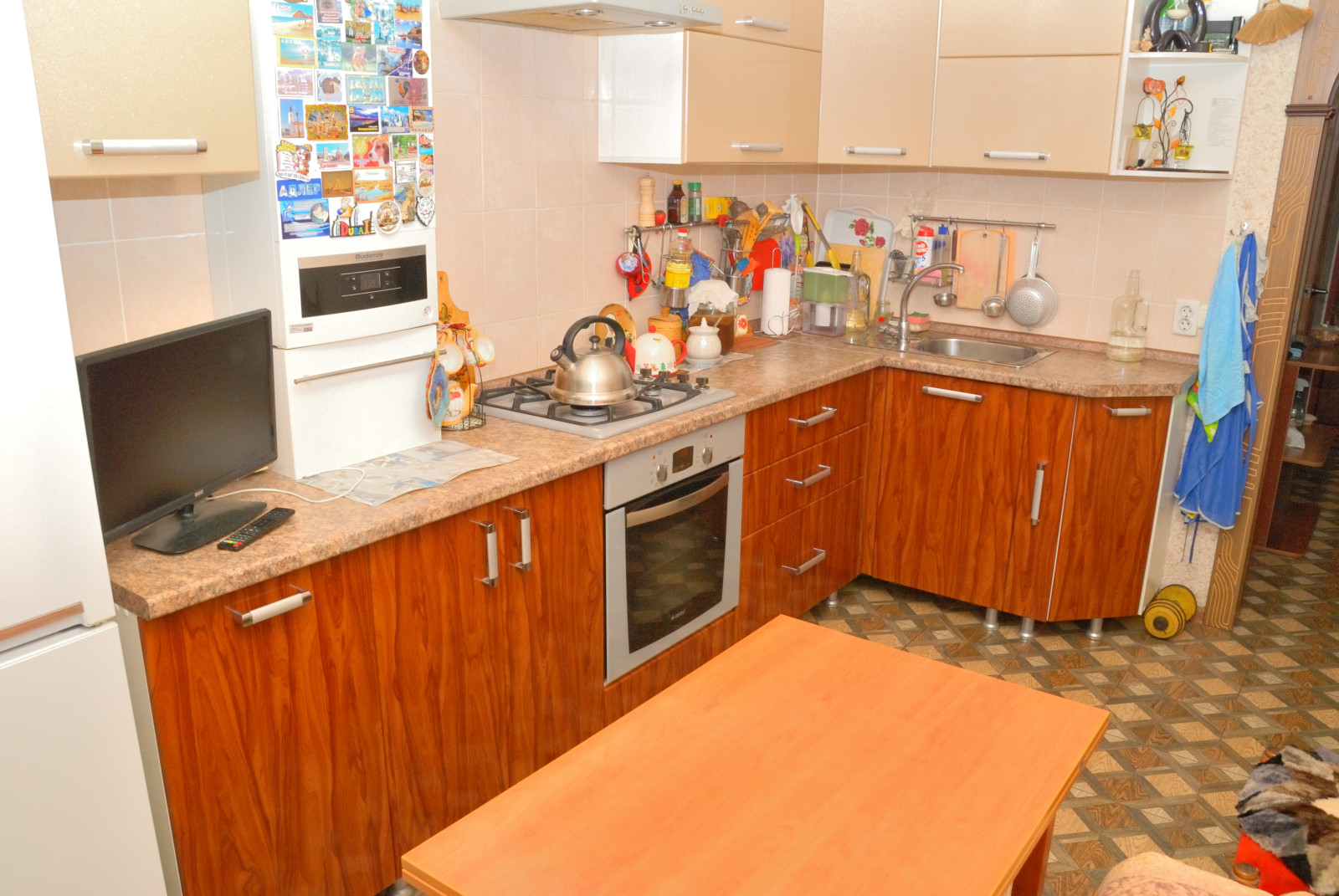 Отделка квартиры качественная, современная: пол ламинат (33-34кл.), керамогранит (вс); стены жидкие мягкие толстые обои, в комнатах качественные обои; потолки натяжные с точечными светильниками, окна ПВХ РЕХАУ. Межкомнатные двери одной коллекции из натурального шпона. С/у раздельный, в кафеле, оснащен с/т оборудованием, тумбой, шкафом с зеркалом и т.д. Котел заменен и установлен Buderus (Logomax Ultra)!, а не китайские Хероли и прочие подобные пародии эконом класса. Теплые полы от котла. Двойная система дымоходов в кухне, раздельная система вытяжек. Лоджия застеклена. Вместительный двухъярусный кухонный гарнитур под заказ с усиленной большой столешницей, настоящим МДФ, доводчиками Blum, духовым шкафом, газовой варочной поверхностью и всем другим необходимым. Все помещения дополнительно оборудованы большим количеством розеток.