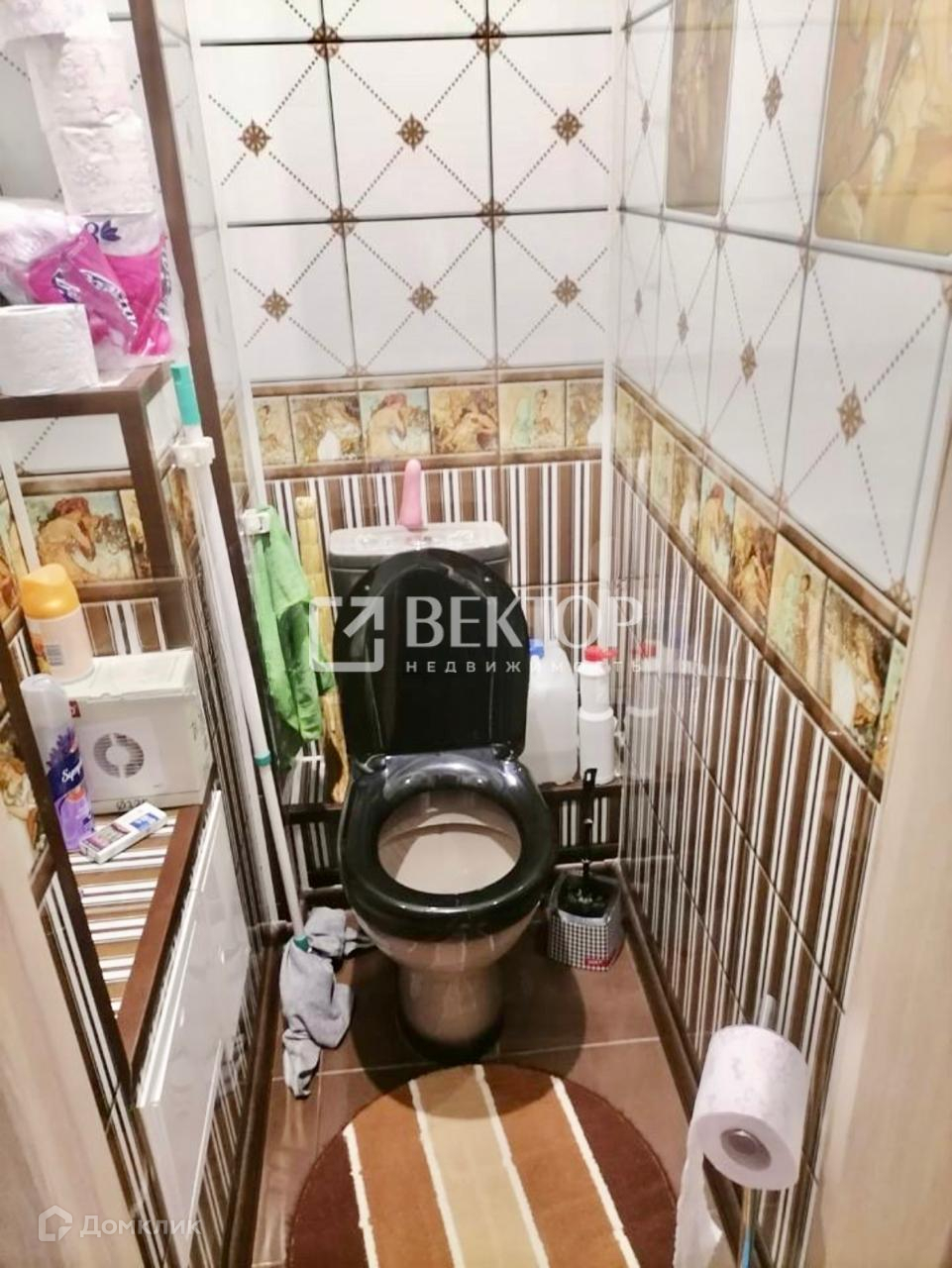 Санузел раздельный  , на полу кафельная плитка , стены - панели .