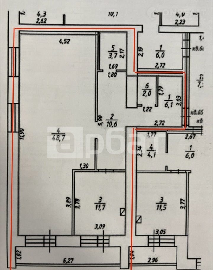 Жилая площадь 47.7 м2