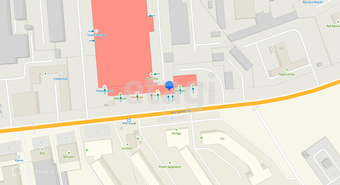 Помещение находится на Костромской 99, на 3 этаже 4 этажного здания, общая площадь 10,5 метров.