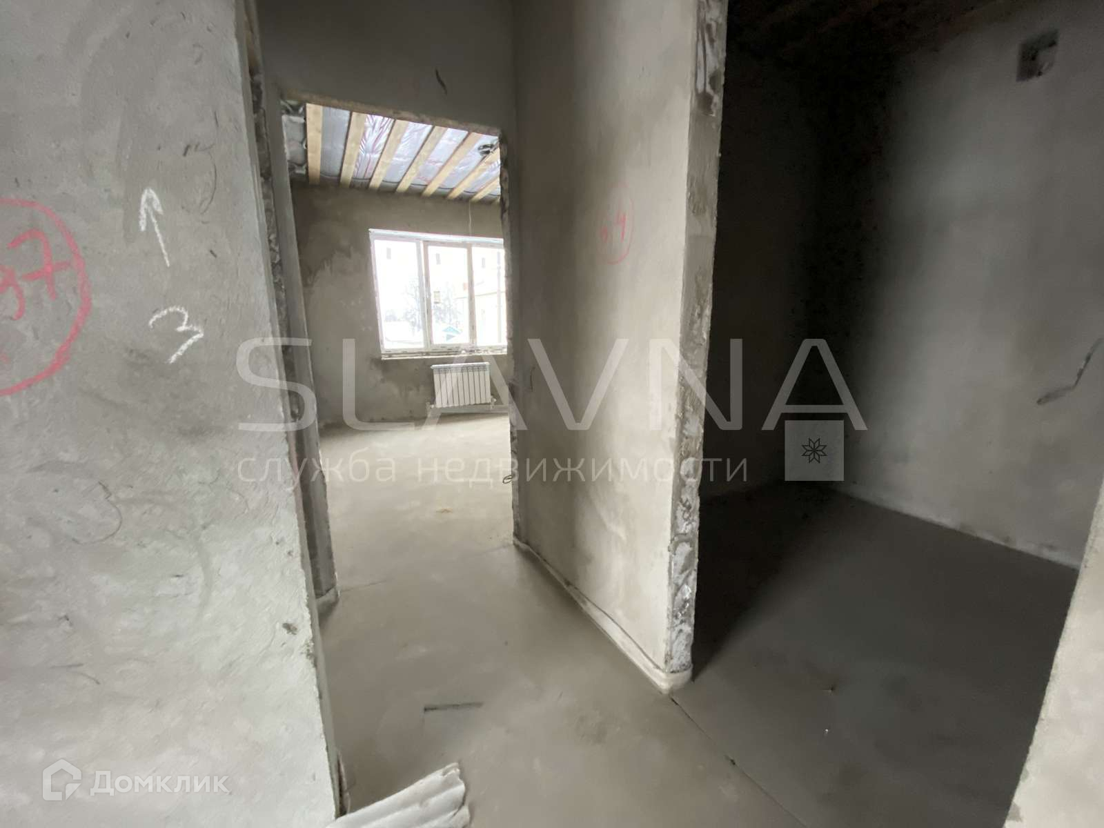 Предчистовая отделка, стены оштукатурены.