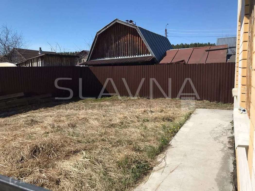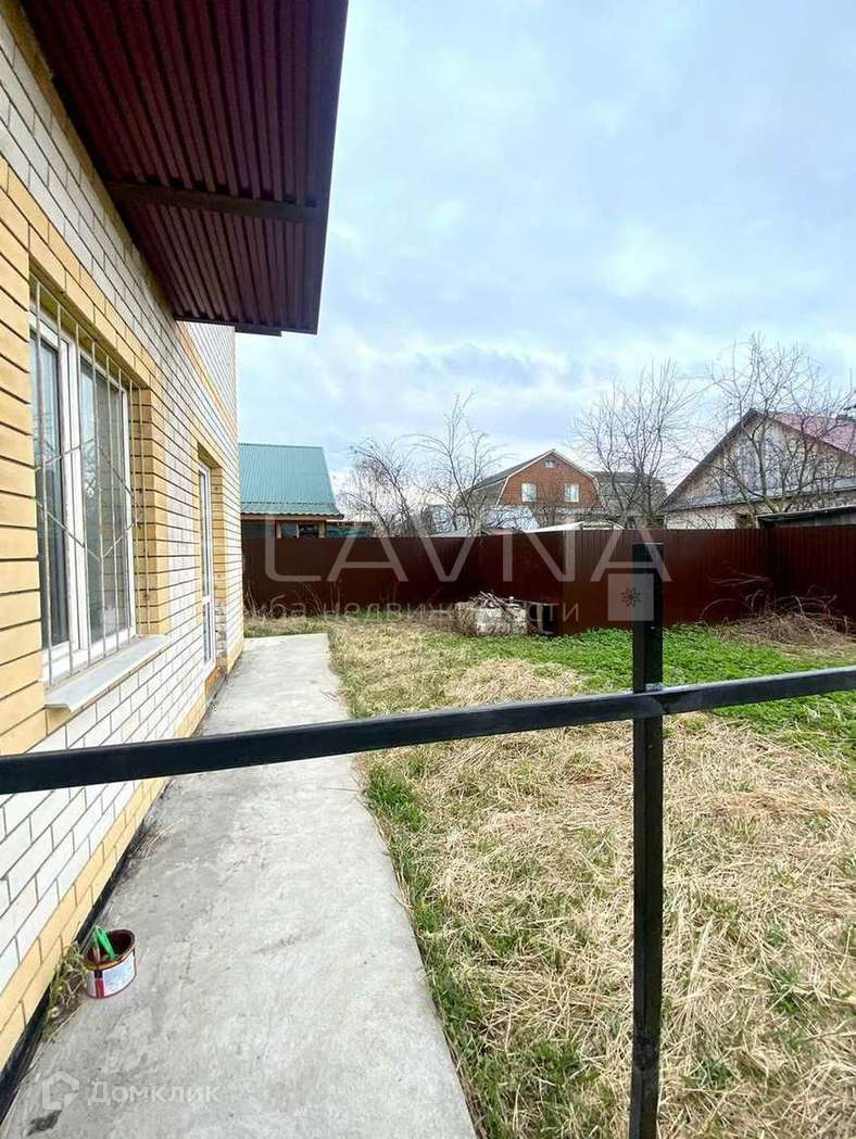 Территория вокруг дома огорожена металлическим забором.