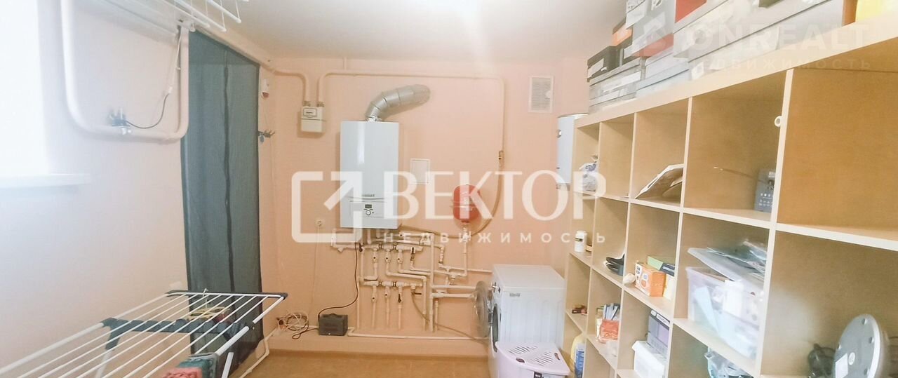 На Первом этаже расположились многофункциональная бойлерная ( установлены 2-х контурный котел, эл.бойлер, стиральная машина и стеллажи для  хозяйственны принадлежностей) с отдельным выходом в зону отдыха