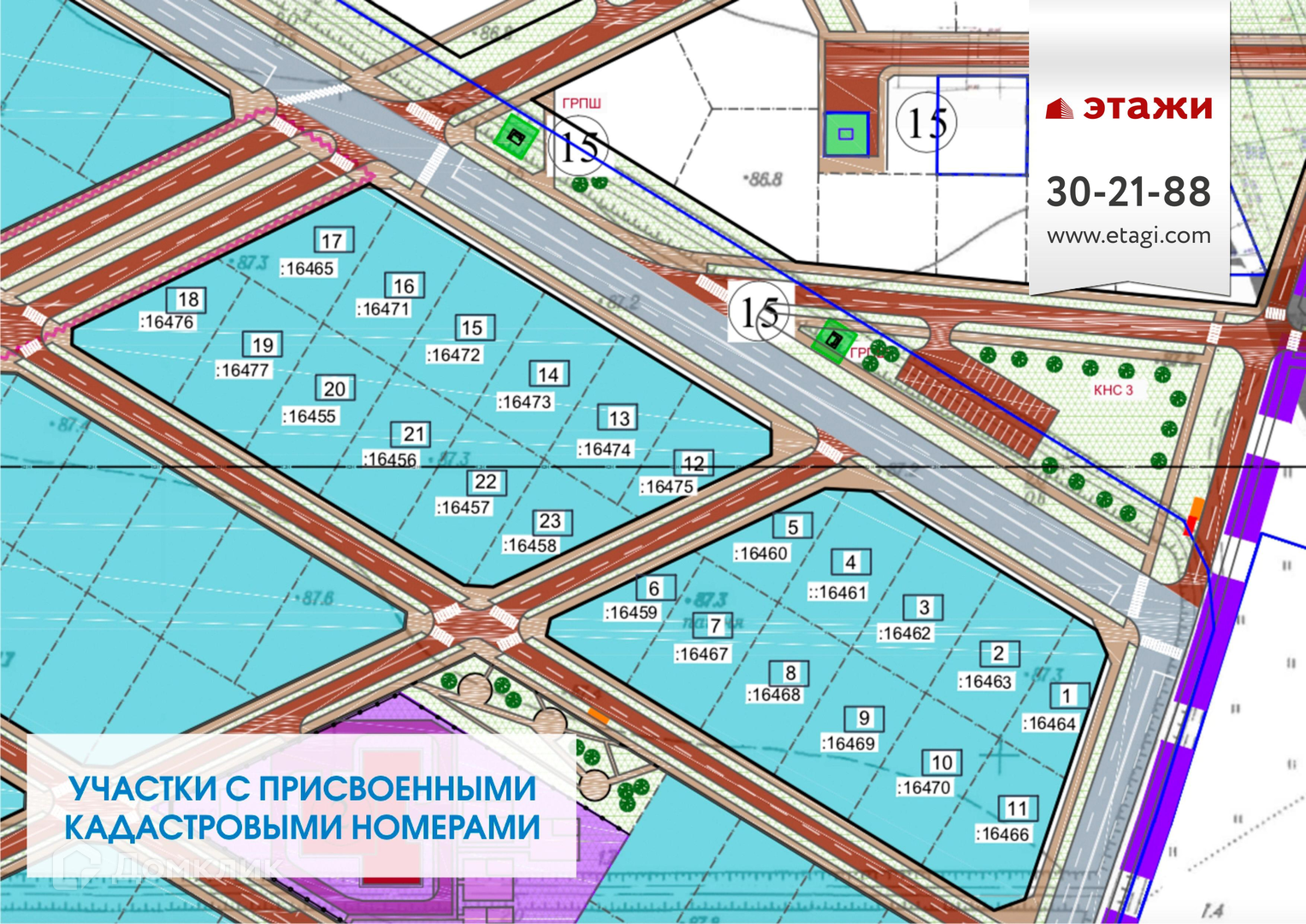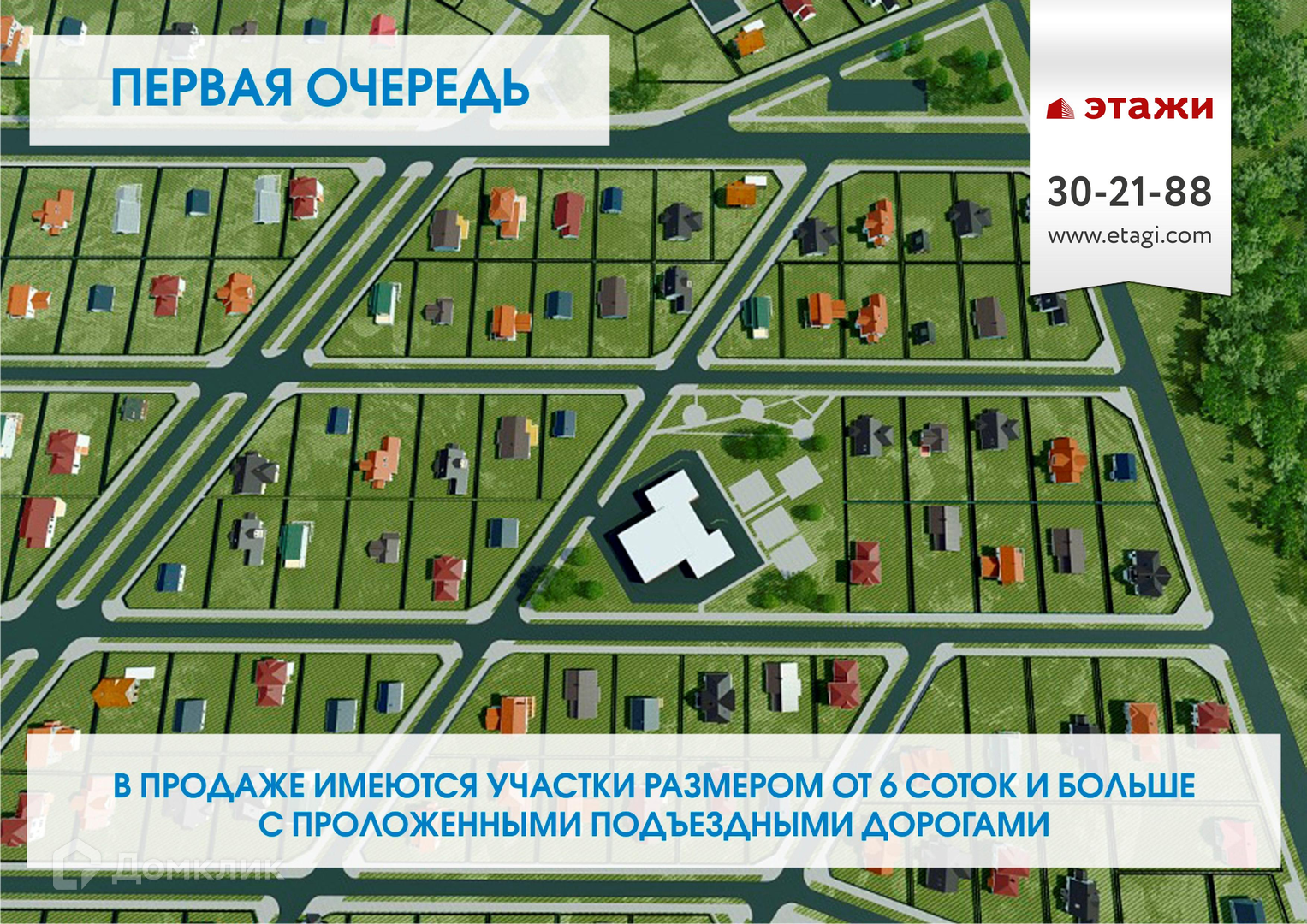 Участки от 6 соток с присвоенными кадастровыми номерами и проложенными подъездными дорогами.