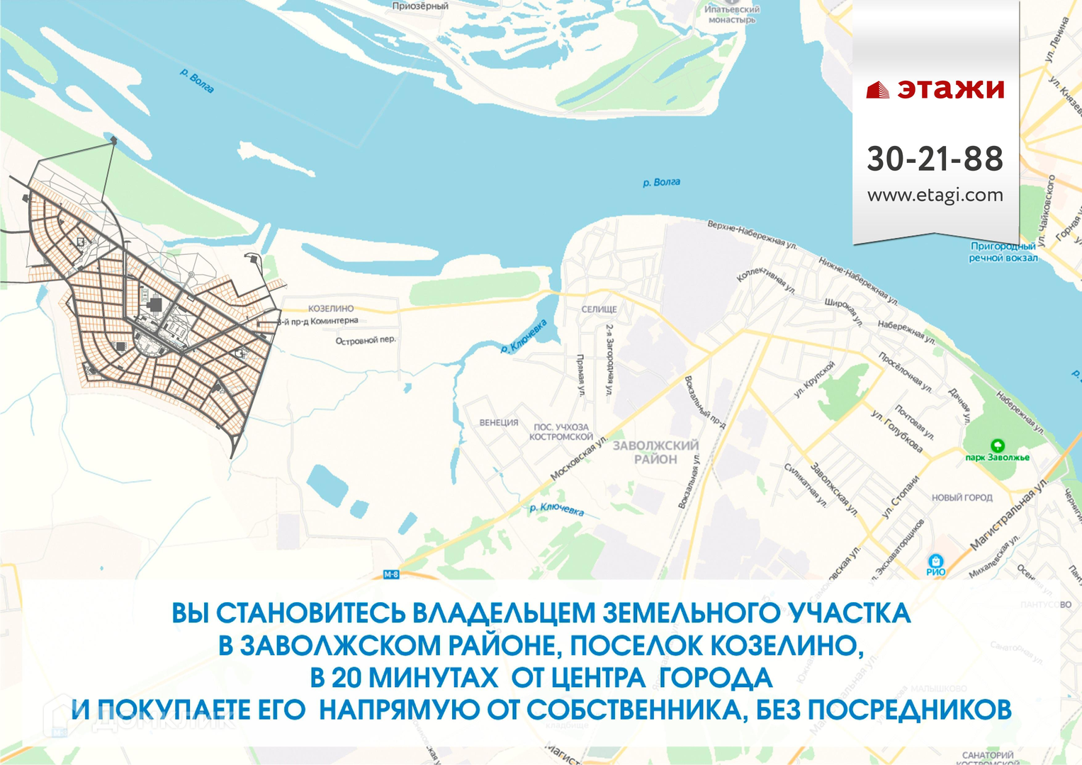 Коттеджный поселок «Малиновка» - уголок спокойствия и гармонии, находящийся в живописном месте, в черте города, на побережье рек Волга и Ключевка. Поселок сочетает в себе близость городской атмосферы и единства с природой. Вы становитесь владельцем земельного участка в Заволжском районе (поселок Козелино) в 20 минутах от центра города и покупаете его в собственность.