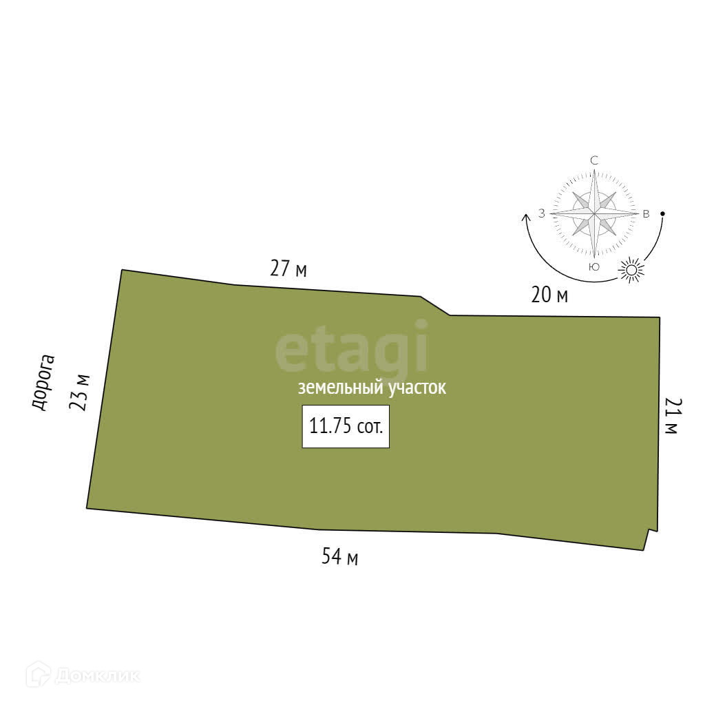 Площадь участка 11.75 сот.