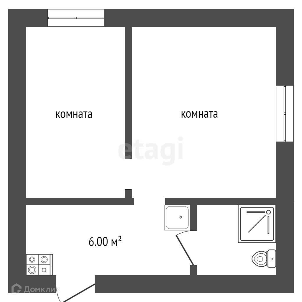 2-комнатная квартира, 23.1 м2, в аренду на длительный срок в Костроме, Центральная улица, 48А