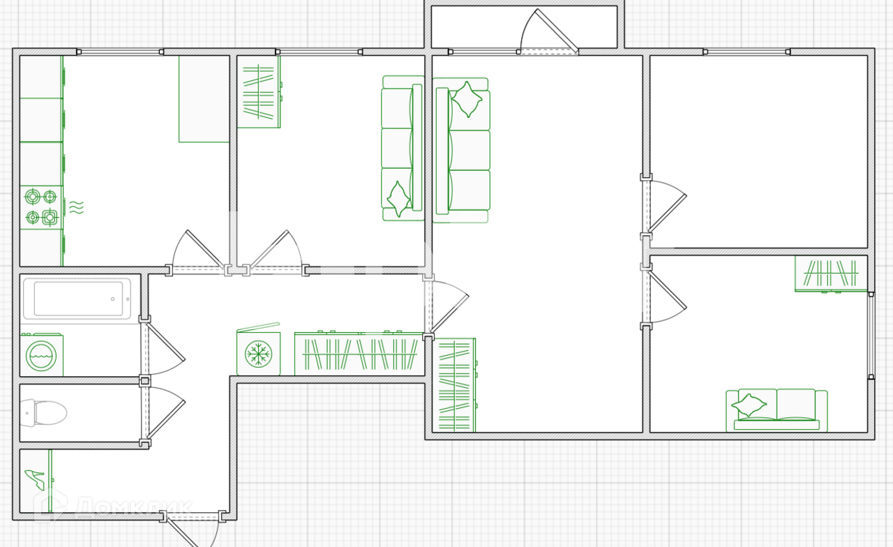 3-комнатная квартира, 58.2 м2, в аренду на длительный срок в Костроме, микрорайон Якиманиха, 12