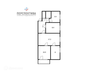 Общая площадь: 43.4 м2