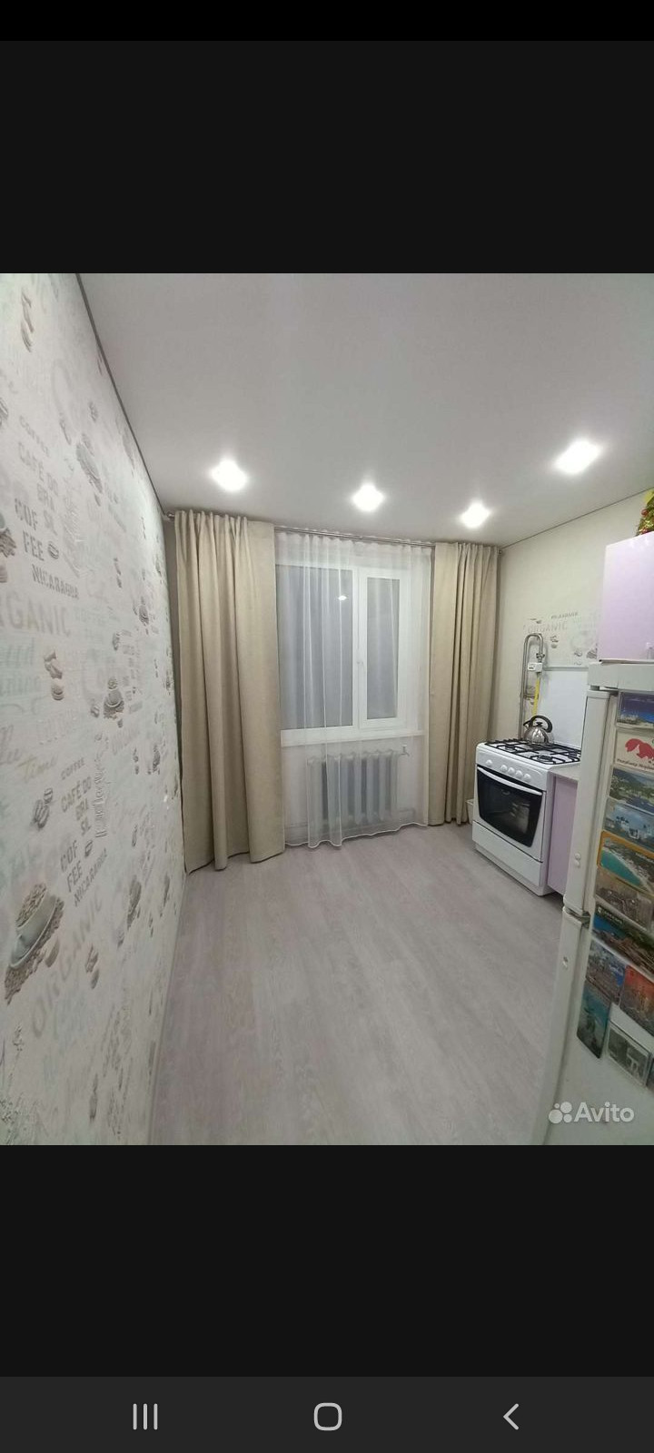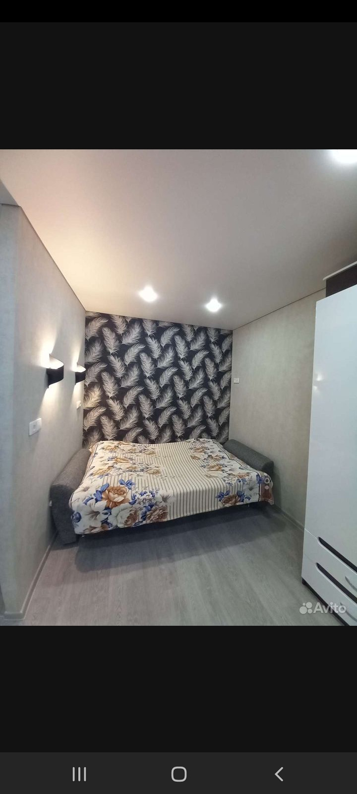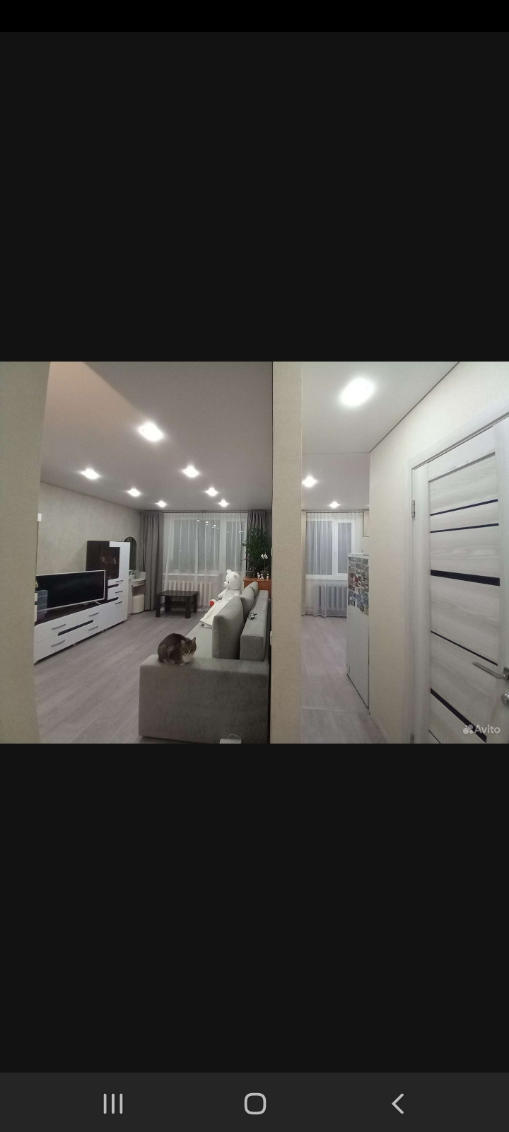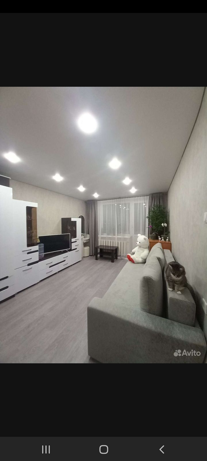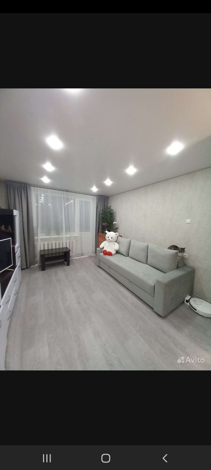 - Потолки натяжные - белые матовые, выведены в один уровень по всей квартире. Имеется небольшая гардеробная. Выделена зона спальни, есть закладные для установки перегородки / шторы или др. Из мебели остается- стенка и кух.гарнитур