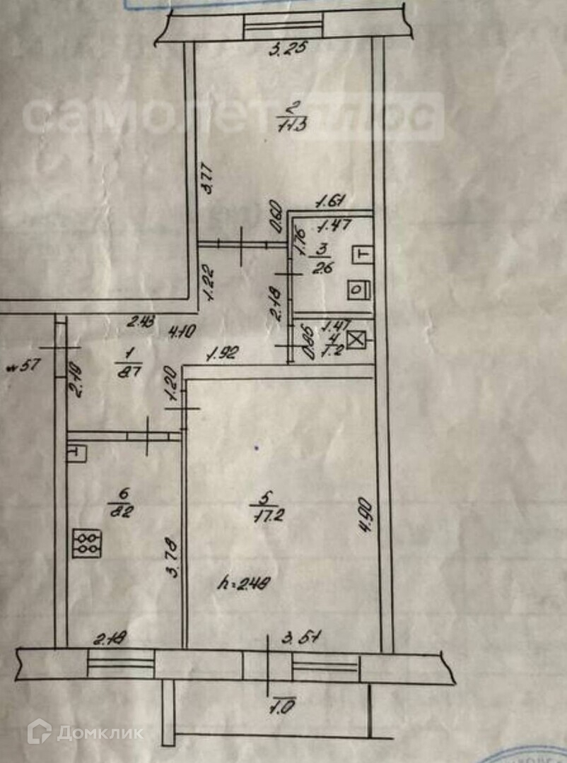 Общая площадь 50.2 м2