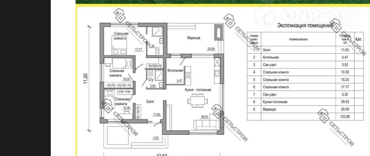 В доме площадью 124 м² предусмотрено: - 3 спальни - 2 санузла  - 1 просторная гостиная.