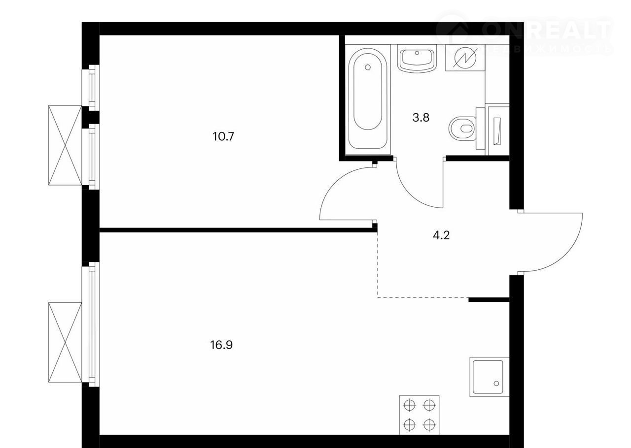 Жилая площадь 10.7 м2