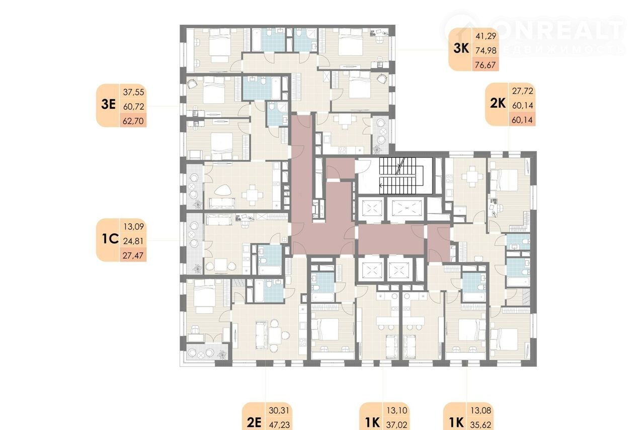 На этаже всего от 4 до 7 квартир, при этом 3 - 4 лифта Собственный МФЦ и пункт полиции Фасады - инновационная система вентиляционного комбинированного фасада Статус недвижимости - квартиры
