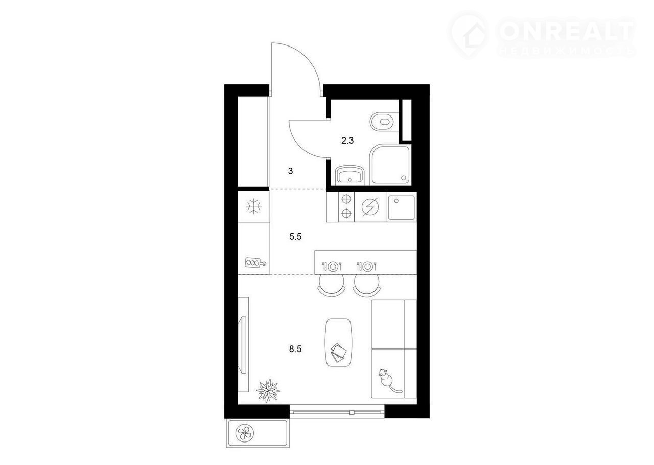 Жилая площадь 8.5 м2