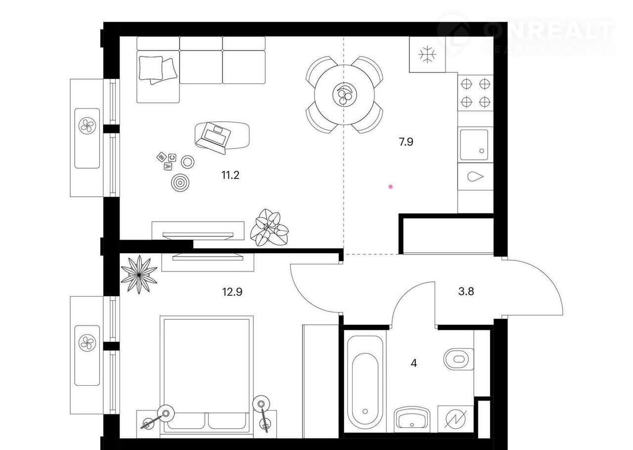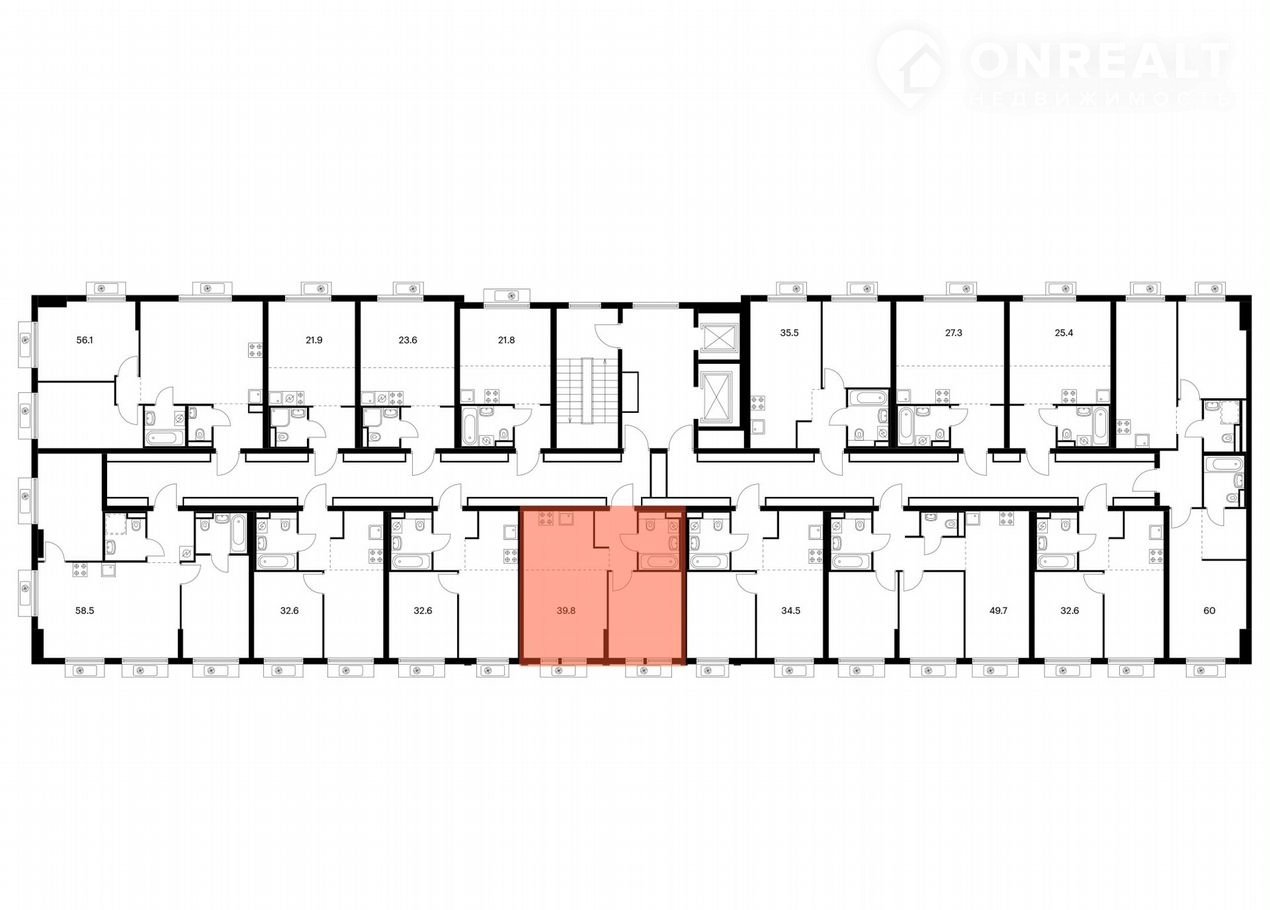 Общая площадь 39.8 м2