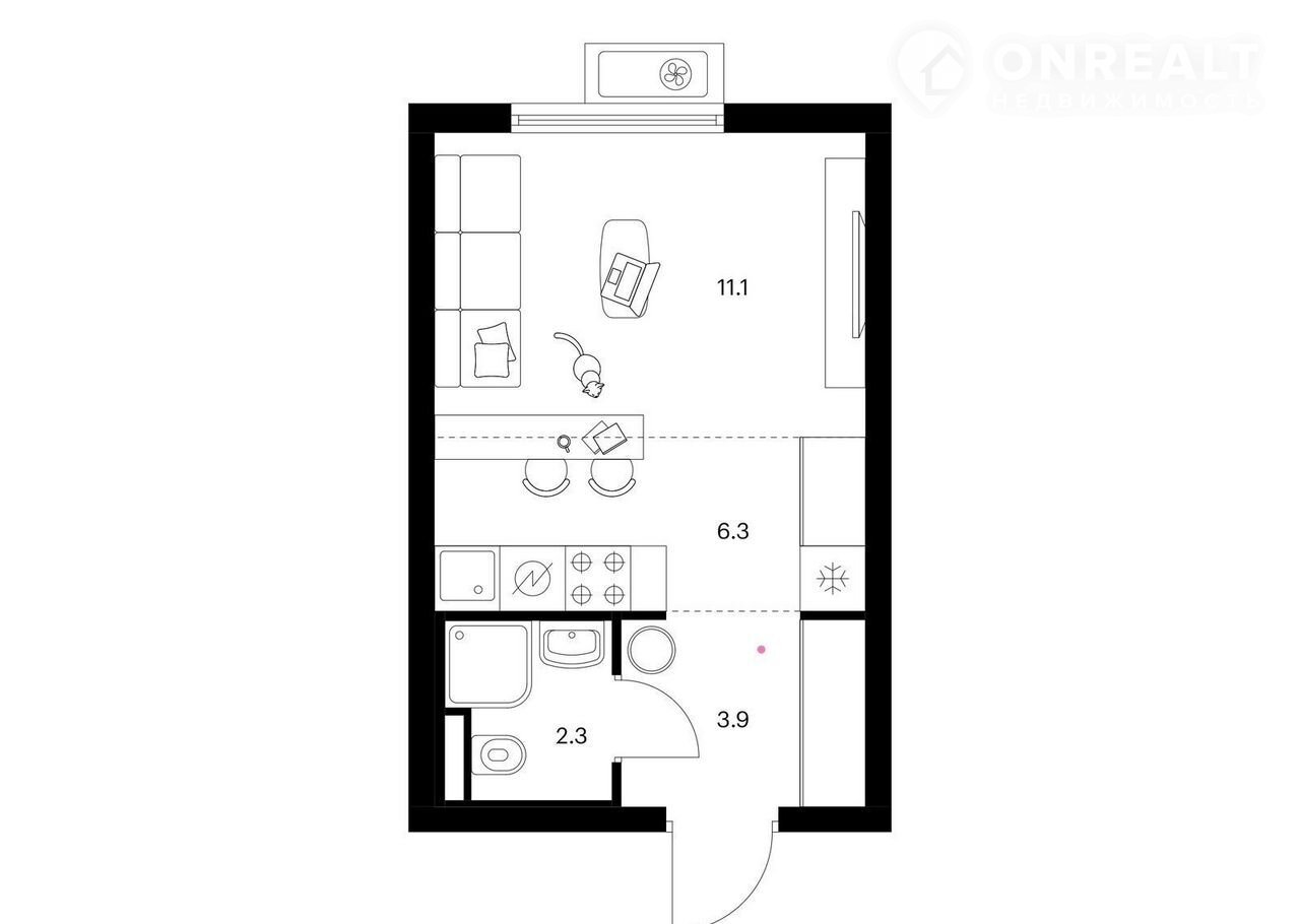 Общая площадь 23.6 м2