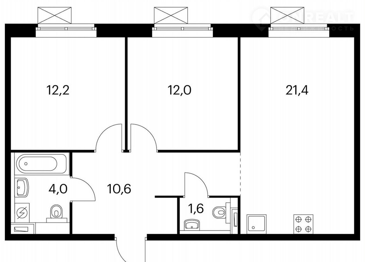 Общая площадь 61.2 м2