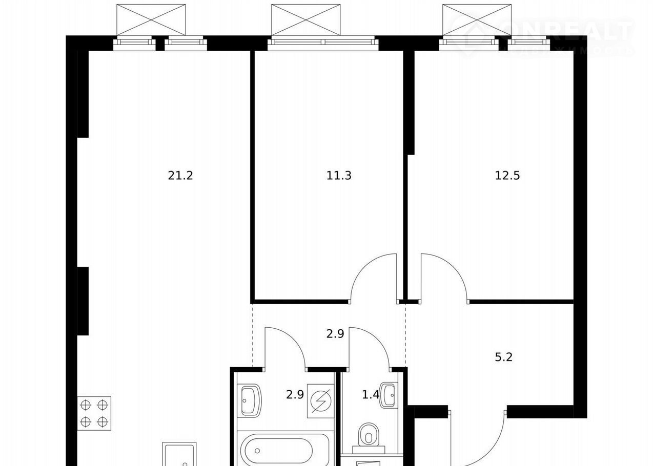 Общая площадь 57.4 м2