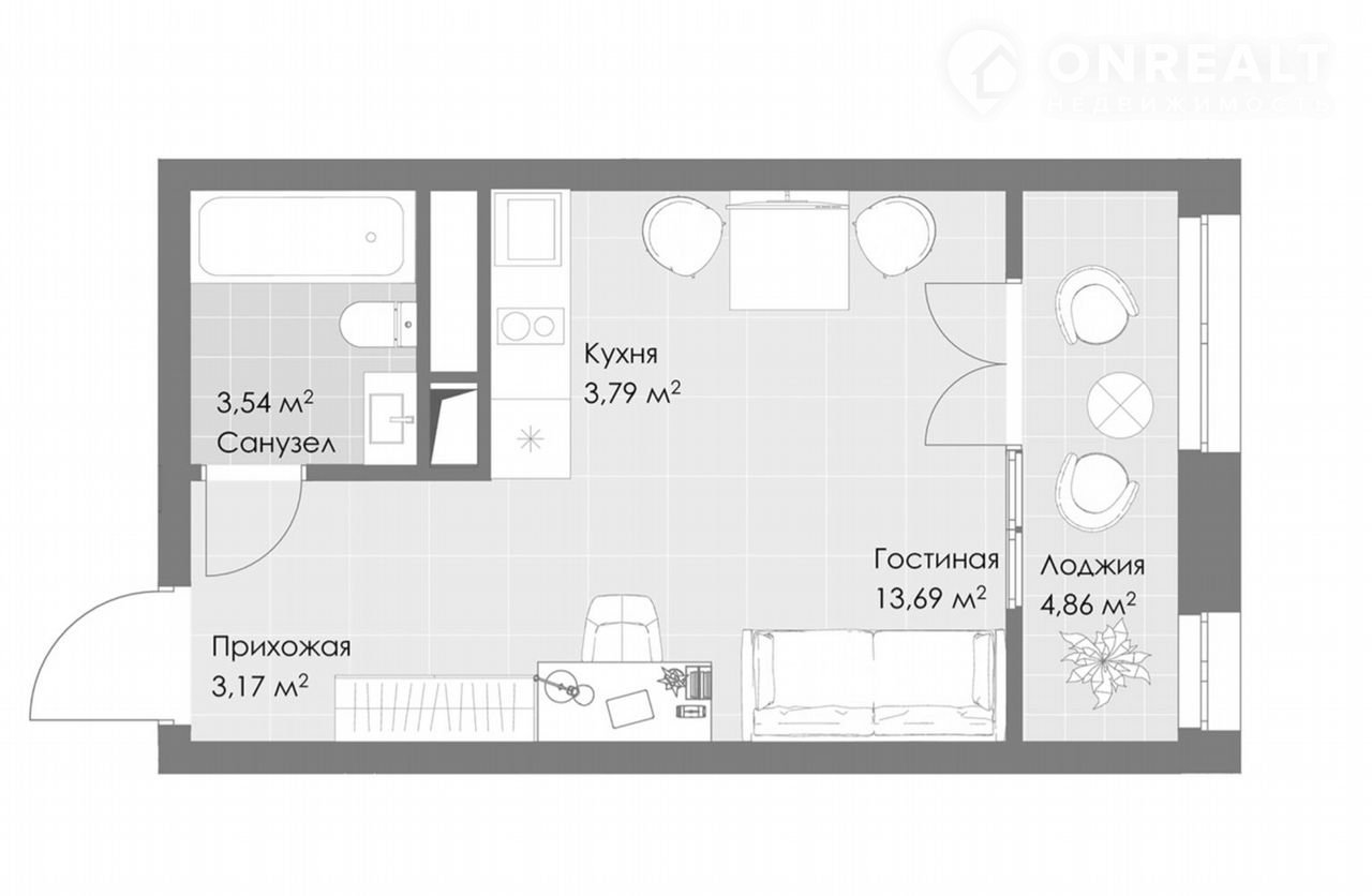✔Площадь 27 м² (жилая – 13,28 м²) + тёплая лоджия 4,84 м² (учитывается с понижающим коэффициентом)