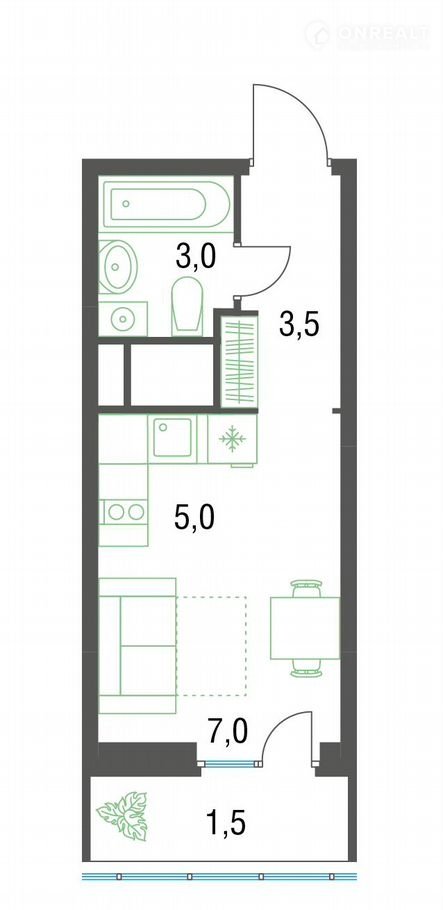 Общая площадь 20.7 м2