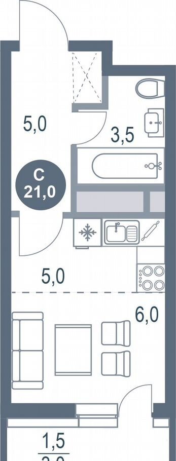 Общая площадь 21 м2